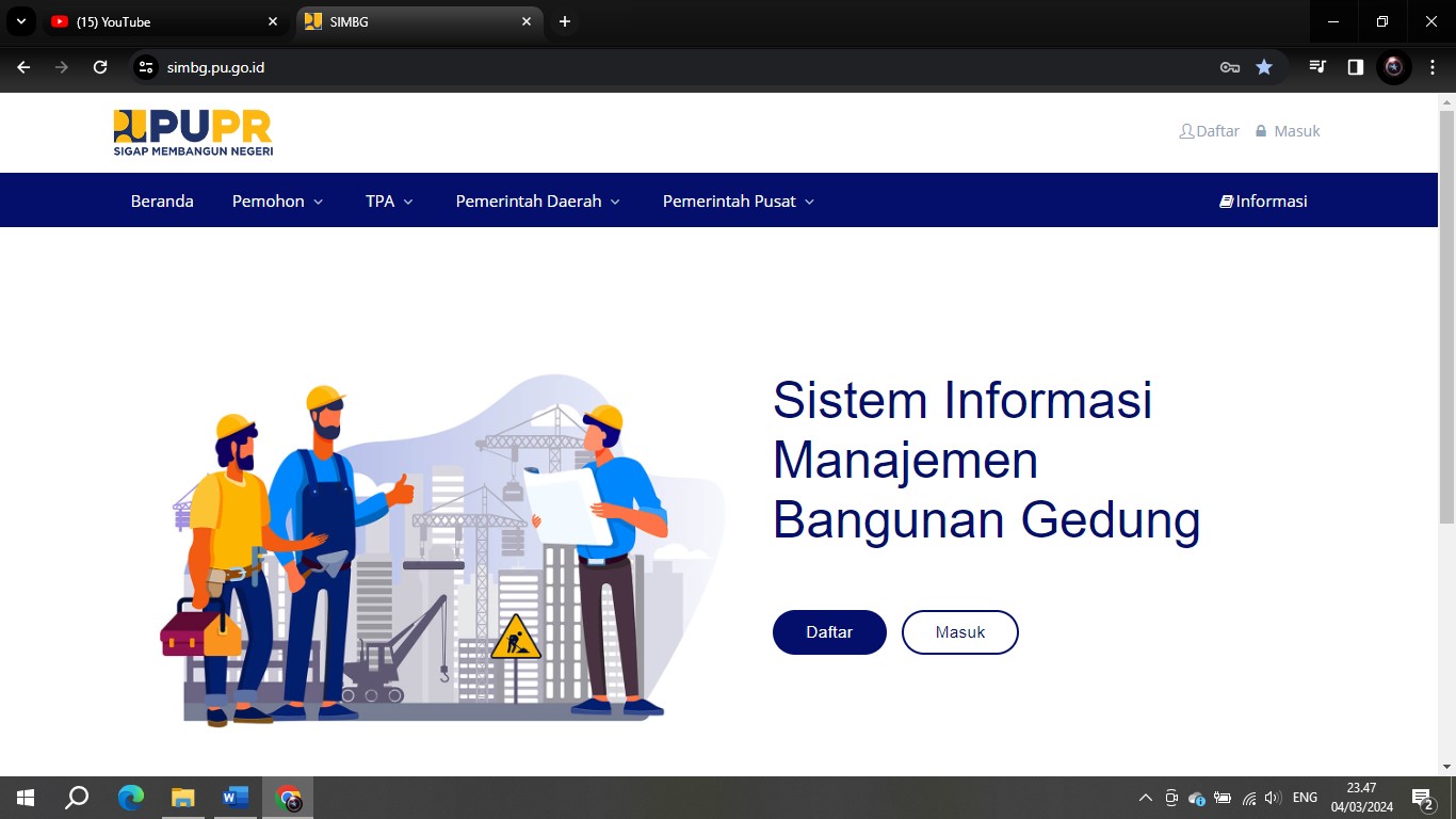 dapat diakses dengan membuka laman simbg.pu.go.id, kemudian dilanjutkan dengan membuat