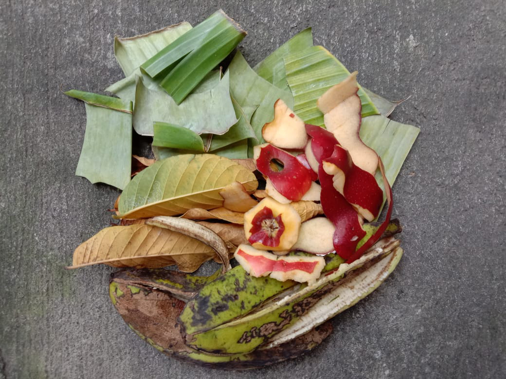sayur, kulit buah, buah busuk, dan ampas teh/kopi).