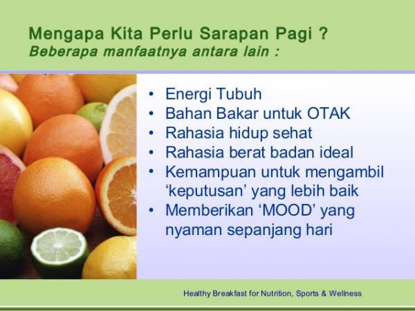 Kandungan makanan yang anda asup saat pagi hari akan mengawali hidup sehat anda dan energi untuk menjalani berbagai aktivitas di siang hingga malam hari.