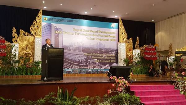 Demikian disampaikan Direktur Jenderal Penyediaan Perumahan Kementerian PUPR Khalawi Abdul Hamid saat membuka kegiatan Rapat Koordinasi Pelaksanaan Dana Alokasi Khusus Bidang Perumahan dan Permukiman Tahun Anggaran 2018 di Prime Plaza Hotel Sanur, Bali, Rabu (4/4/2018) malam. Kegiatan tersebut dihadiri ratusan peserta perwakilan Pemda, Pokja Perumahan di daerah, pemerhati perumahan dan Satker Non Vertikal Tertentu (SNVT) Penyediaan Perumahan.
