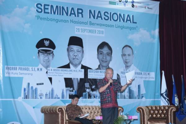 Hadir pula sebagai narasumber dalam acara tersebut Senior Campaigner Greenpeace Indonesia dan Guru Besar Teknik Lingkungan Undip Syafrudin. Nampak hadir Rektor Universitas Diponegoro (Undip) Semarang Yos Johan Utama dan Dekan Fakultas Teknik Undip Agung Wibowo. (Jay)