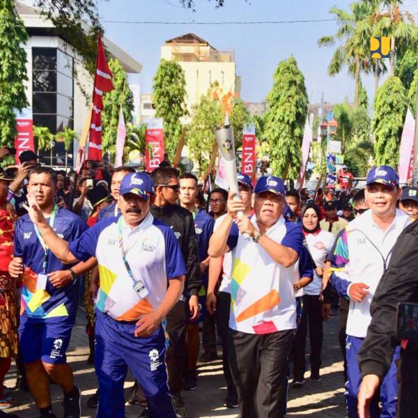 Solo-Menteri Pekerjaan Umum dan Perumahan Rakyat (PUPR) Basuki Hadimuljono menjadi pembawa obor Asian Games ke-18 tahun 2018 dalam pawai yang berlangsung di Kota Solo, Kamis (19/7/2018). Menteri Basuki menjadi pembawa obor terakhir dalam Pawai Obor Asian Games di Solo yang menempuh jarak dari Kantor Perwakilan Bank Indonesia Solo menuju Balai Kota Solo.