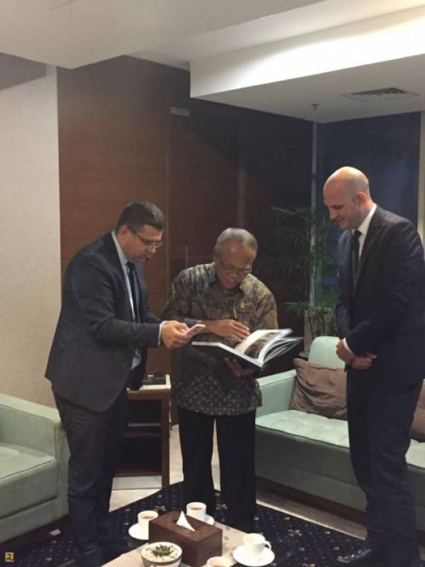 Jakarta--Pada Tanggal 2 Oktober 2017, Menteri Pembangunan Nasional Hungaria Dr Miklos Sesztak didampingi Duta Besar Hunggaria untuk Indonesia Judith Nemeth Pach dan Sekretaris Kedubes Hunggaria, melakukan pertemuan dengan Menteri Pekerjaan Umum dan Perumahan Rakyat (PUPR) Basuki Hadimuljono di Kantor Kementerian PUPR, Jakarta.