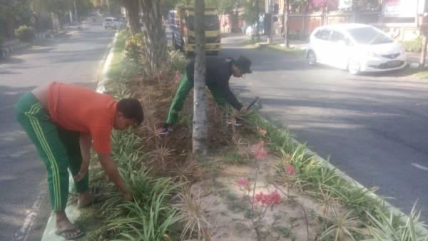 - Pemeliharaan semak, pohon dan perdu, berupa pengendalian hama penyakit dan pemotongan cabang/ranting yang tidak dikehendaki.