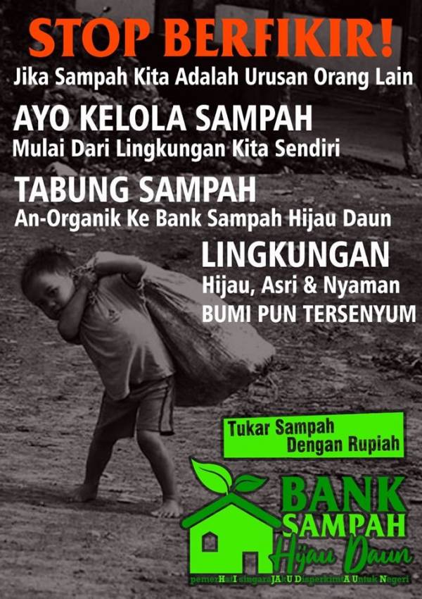 Bagi yang sulit untuk sadar diri. Mungkin sampah-sampah itu tidak berharga. Tetapi, ketika itu dikumpul, dipilah dan ditabung ke Bank Sampah. Maka sampah itu akan berubah menjadi rupiah yang tentu sangat berarti bagi kita semua.