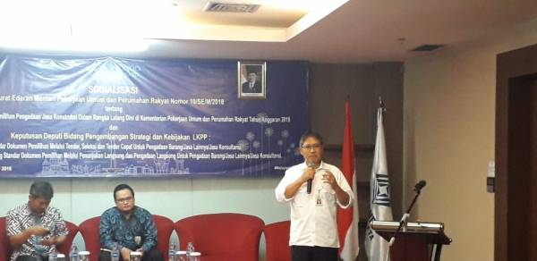 Jakarta - Kementerian Pekerjaan Umum dan Perumahan Rakyat melakukan Sosialisasi Surat Edaran Menteri Pekerjaan Umum dan Perumahan Rakyat 10/SE/M/2018 tentang Pemberlakuan Standar Dokumen Pemilihan Pengadaan Jasa Konstruksi dalam Rangka Lelang Dini di Kementerian PUPR. Hal tersebut dilakukan untuk meningkatkan pemahaman mengenai perencanaan pengadaan jasa Konstruksi sehingga di masa-masa mendatang perencanaan pengadaan barang dan jasa lebih terarah dan sesuai dengan aturan.