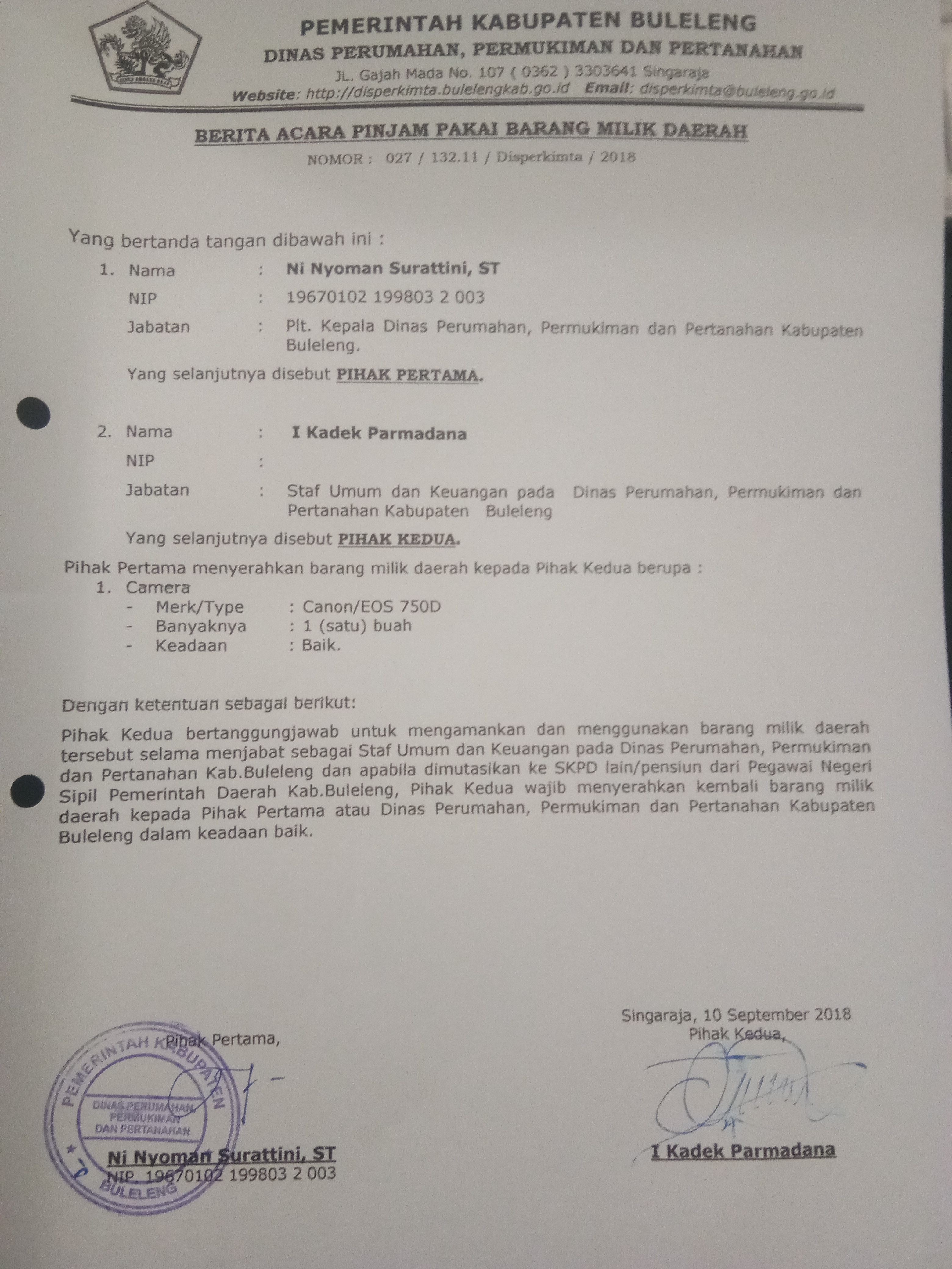 BERITA ACARA PINJAM PAKAI BARANG MILIK DAERAH (Canon/EOS 750D)