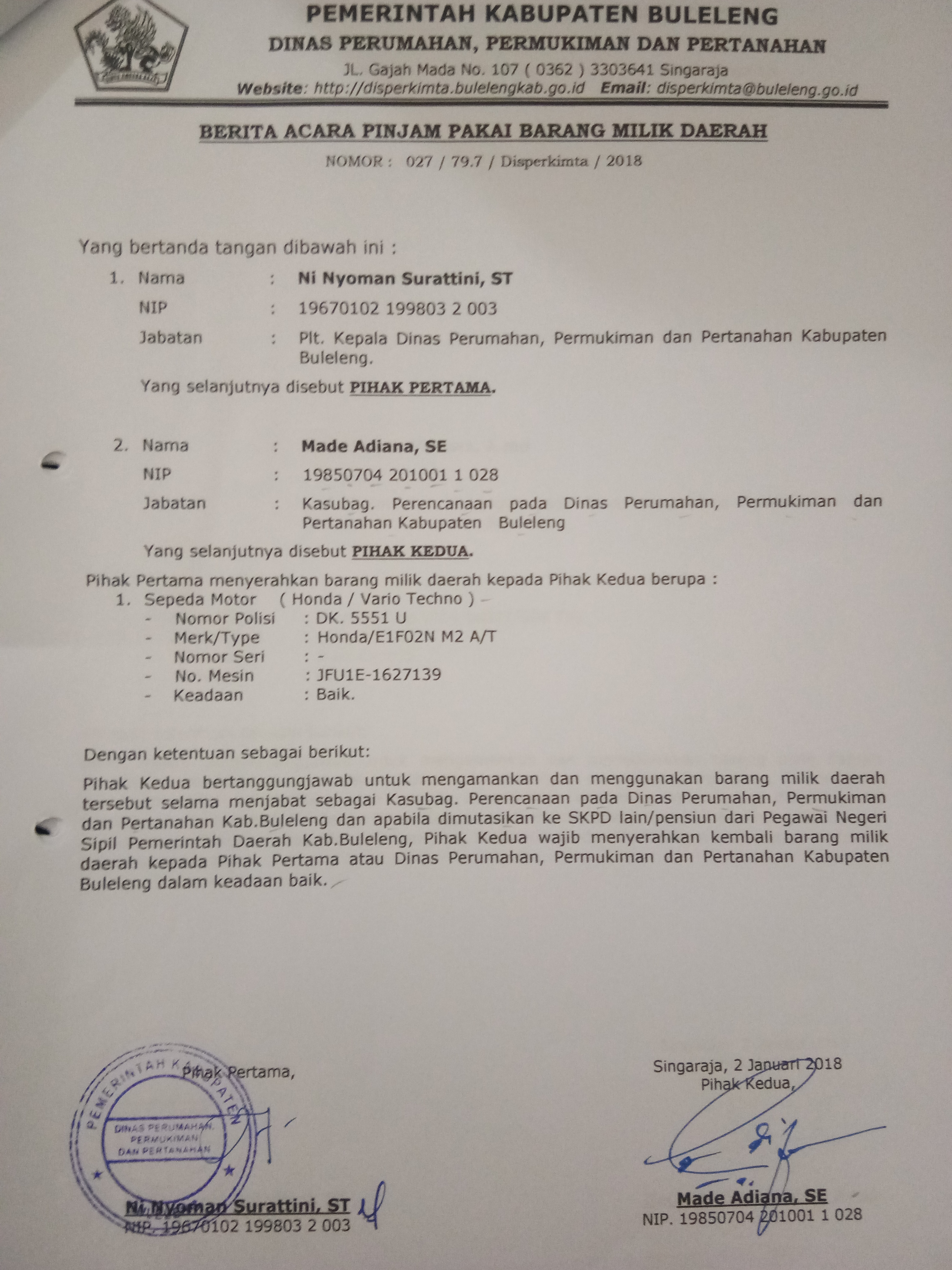 BERITA ACARA PINJAM PAKAI BARANG MILIK DAERAH (HONDA/VARIO TECHNO)