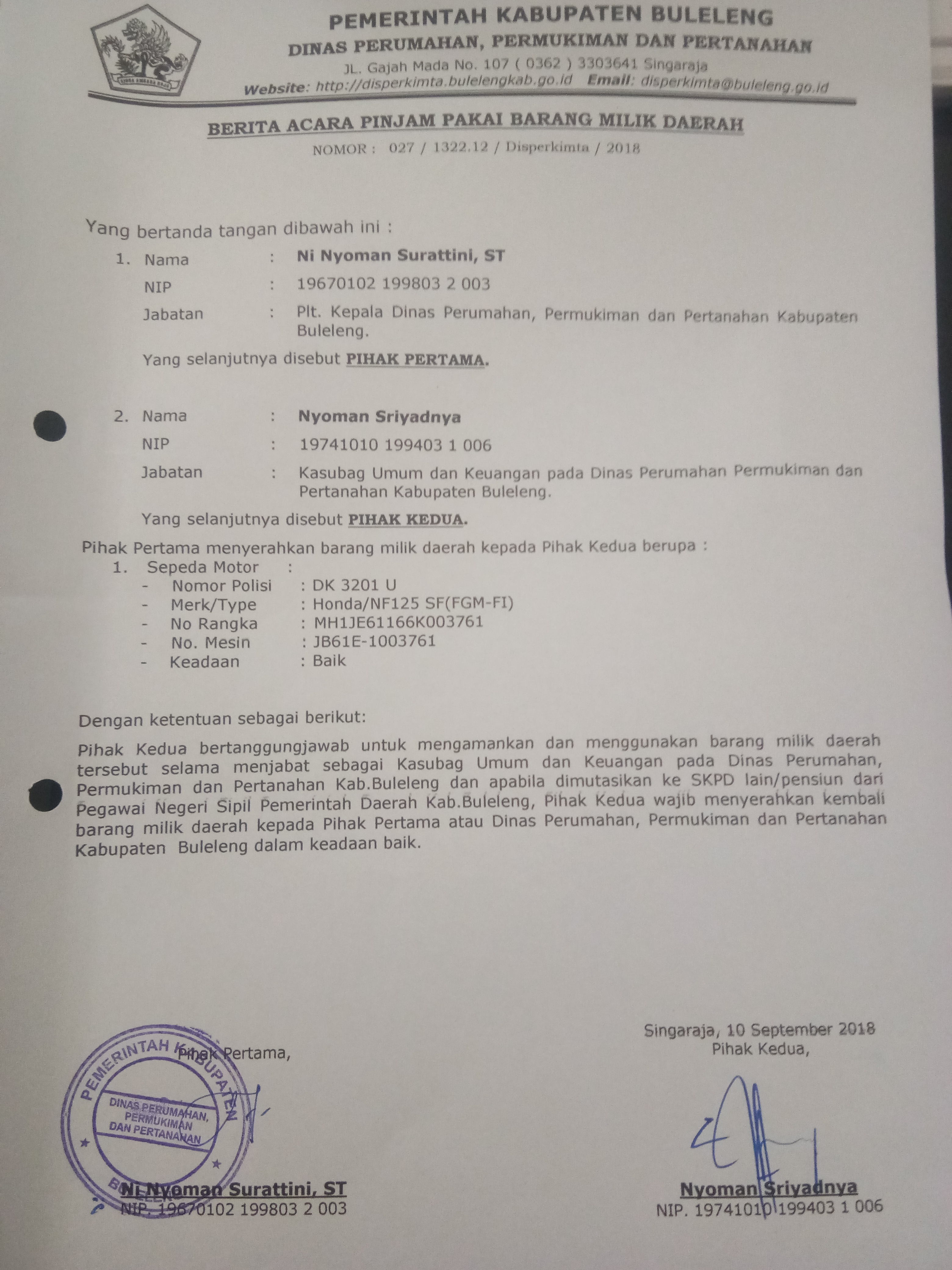 BERITA ACARA PINJAM PAKAI BARANG MILIK DAERAH (Sepeda Motor)