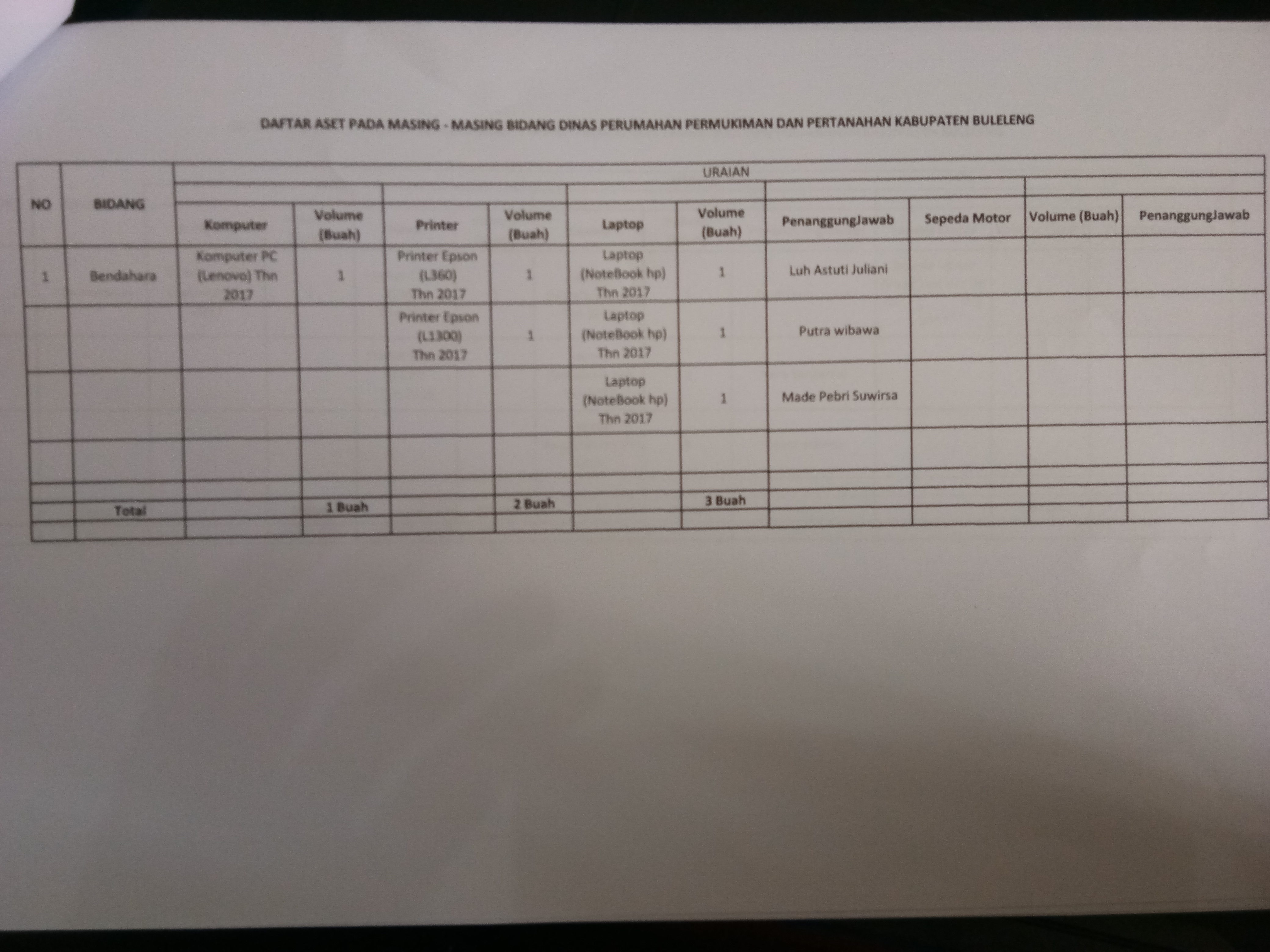DAFTAR ASET PADA MASING MASING BIDANG DINAS PERUMAHAN PERMUKIMAN DAN PERTANAHAN KABUPATEN BULELENG