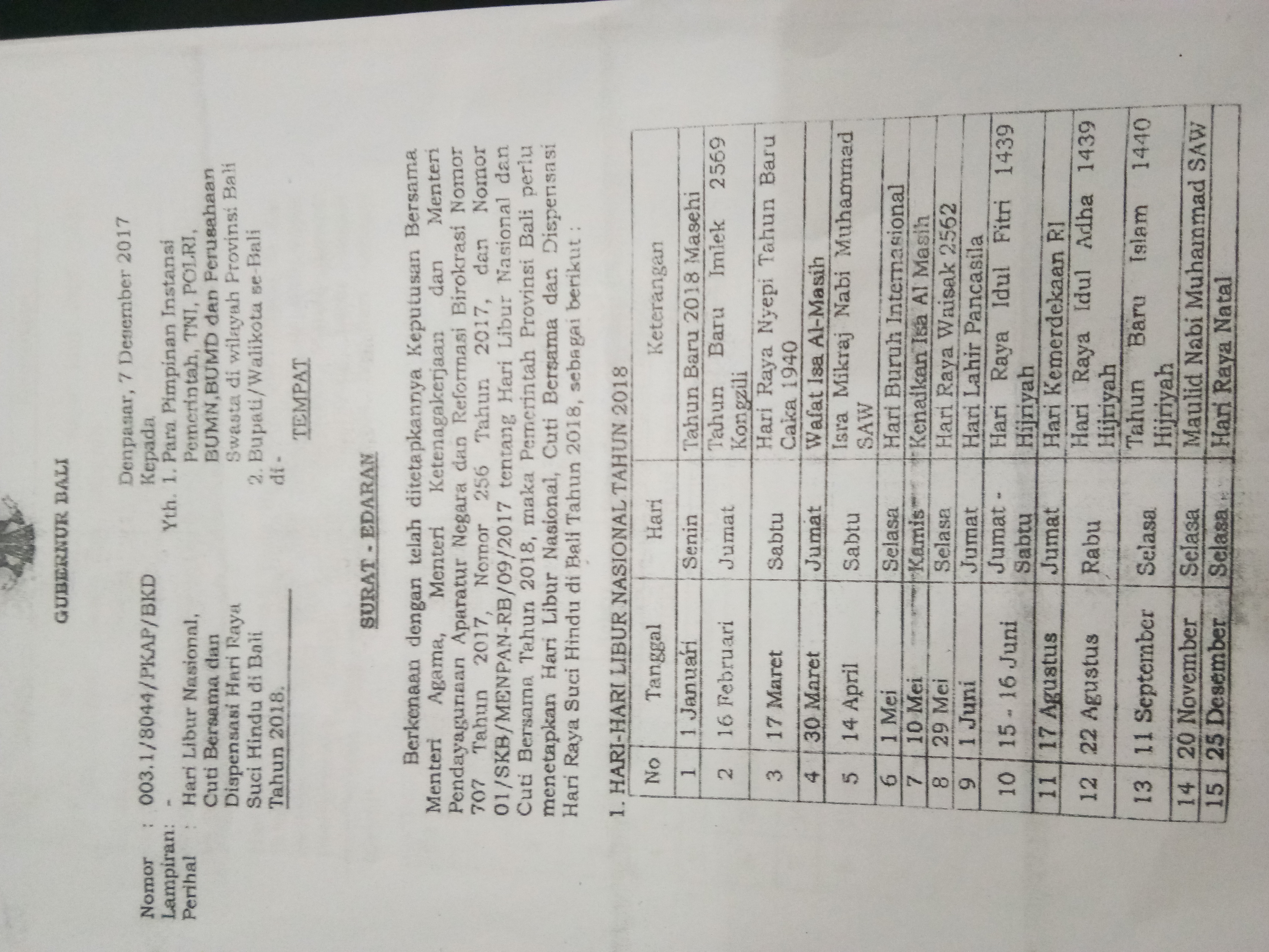 3. HARI LIBUR DAN DISPENSASI PADA HARI RAYA SUCI HINDU DI BALI TAHUN 2018
