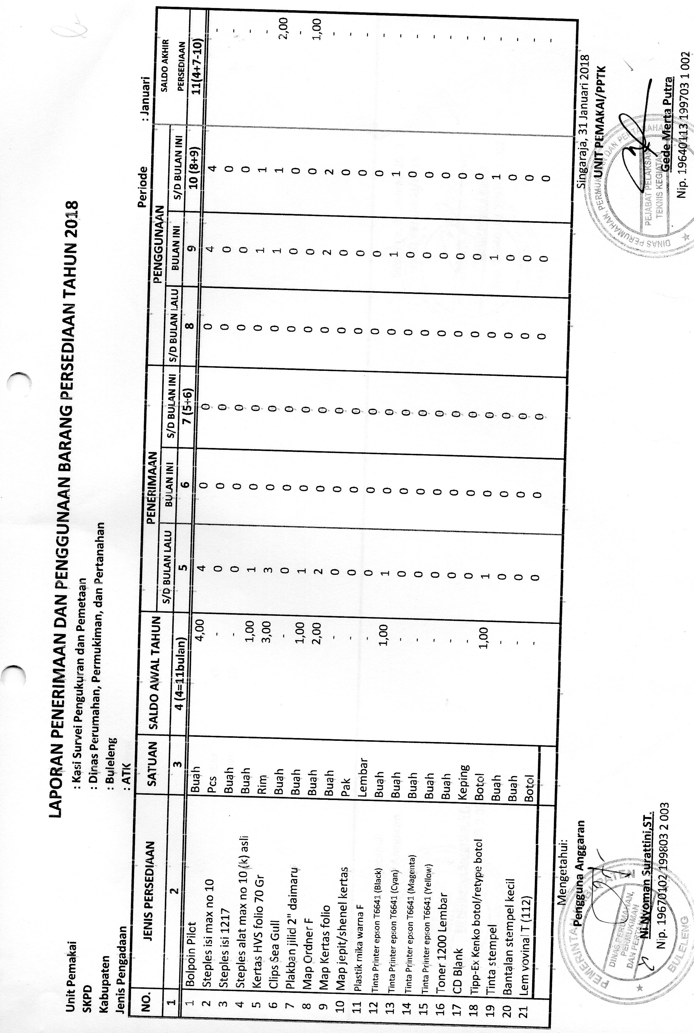 LAPORAN PENERIMAAN DAN PENGGUNAAN BARANG PERSEDIAAN ATK BULAN JANIARI