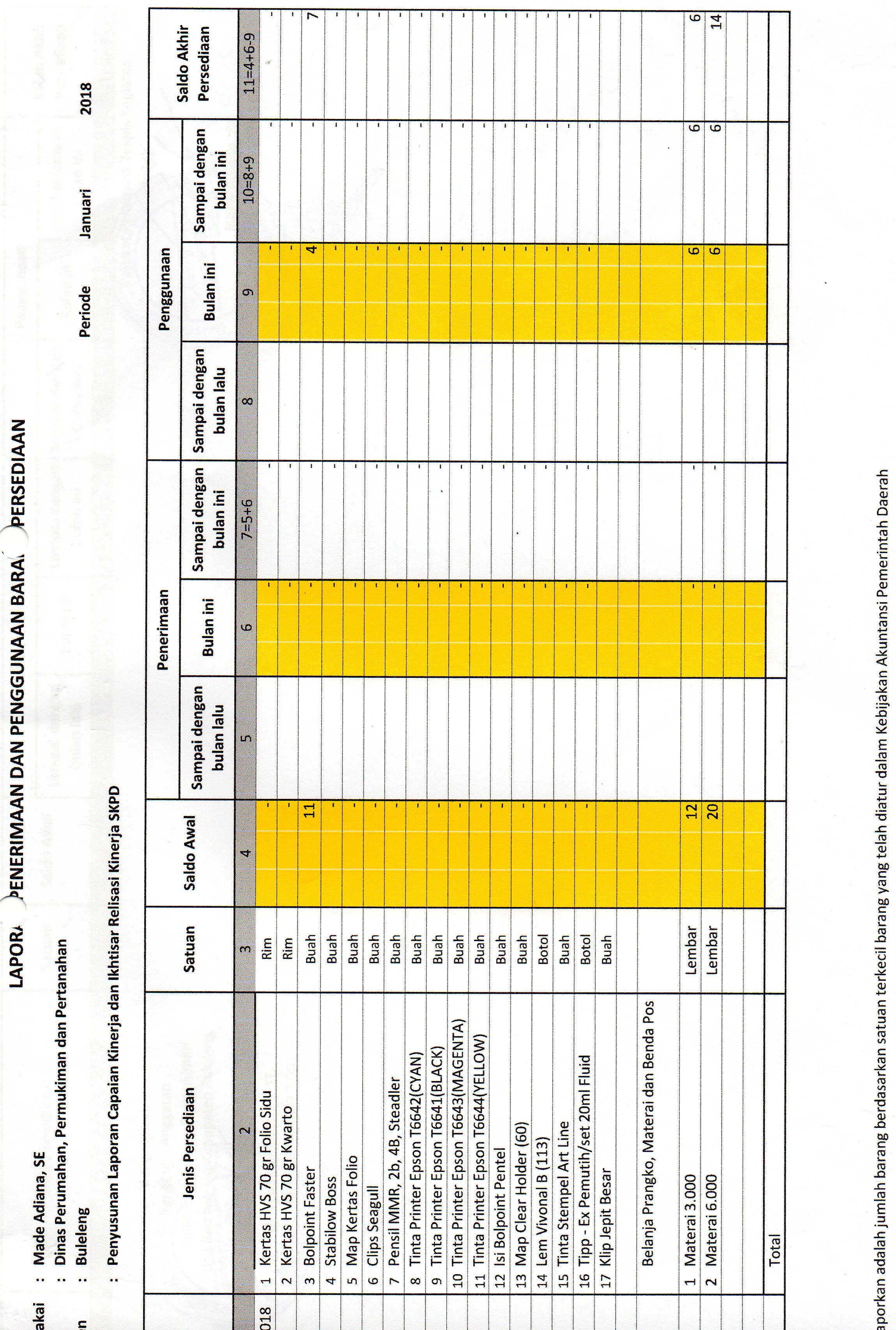 LAPORAN PENERIMAAN DAN PENGGUNAAN BARANG PERSEDIAAN ATK BULAN JANUARI BIDANG PERENCANAAN