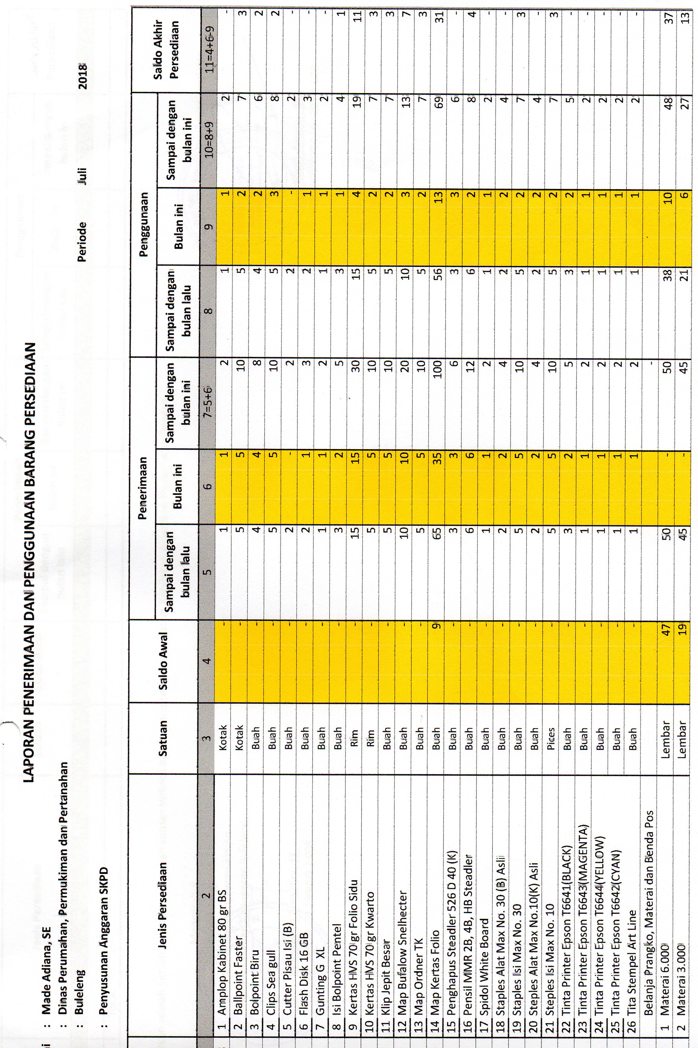 LAPORAN PENERIMAAN DAN PENGGUNAAN BARANG PERSEDIAAN ATK BULAN JULI BIDANG PERENCANAAN