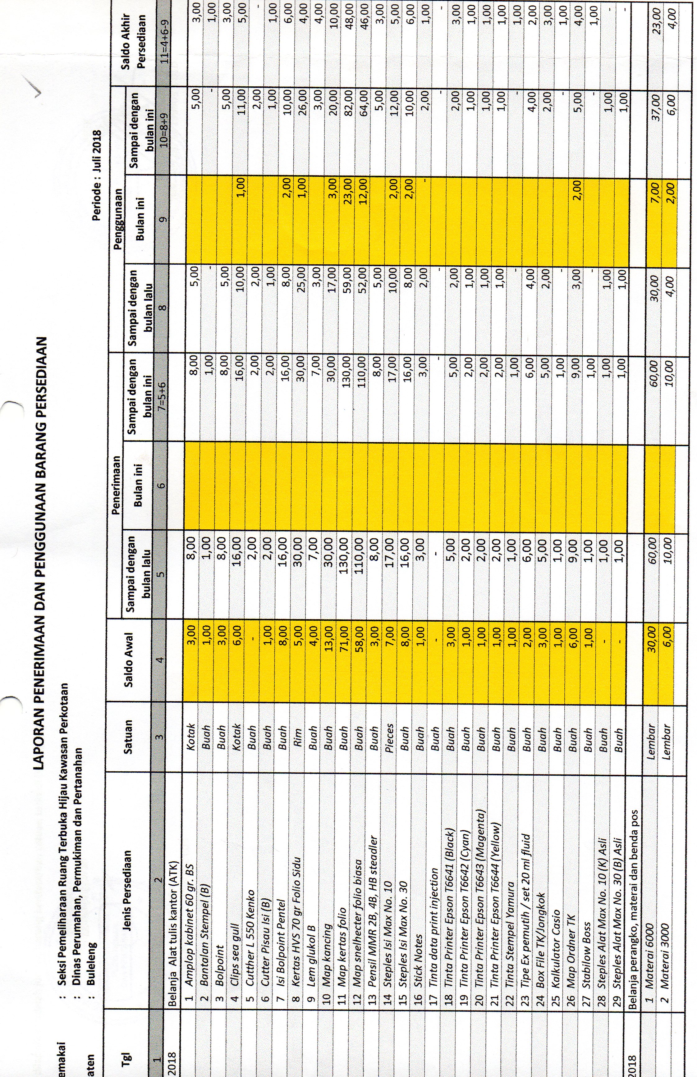 LAPORAN PENERIMAAN DAN PENGGUNAAN BARANG PERSEDIAAN ATK BULAN JULI BIDANG RTH