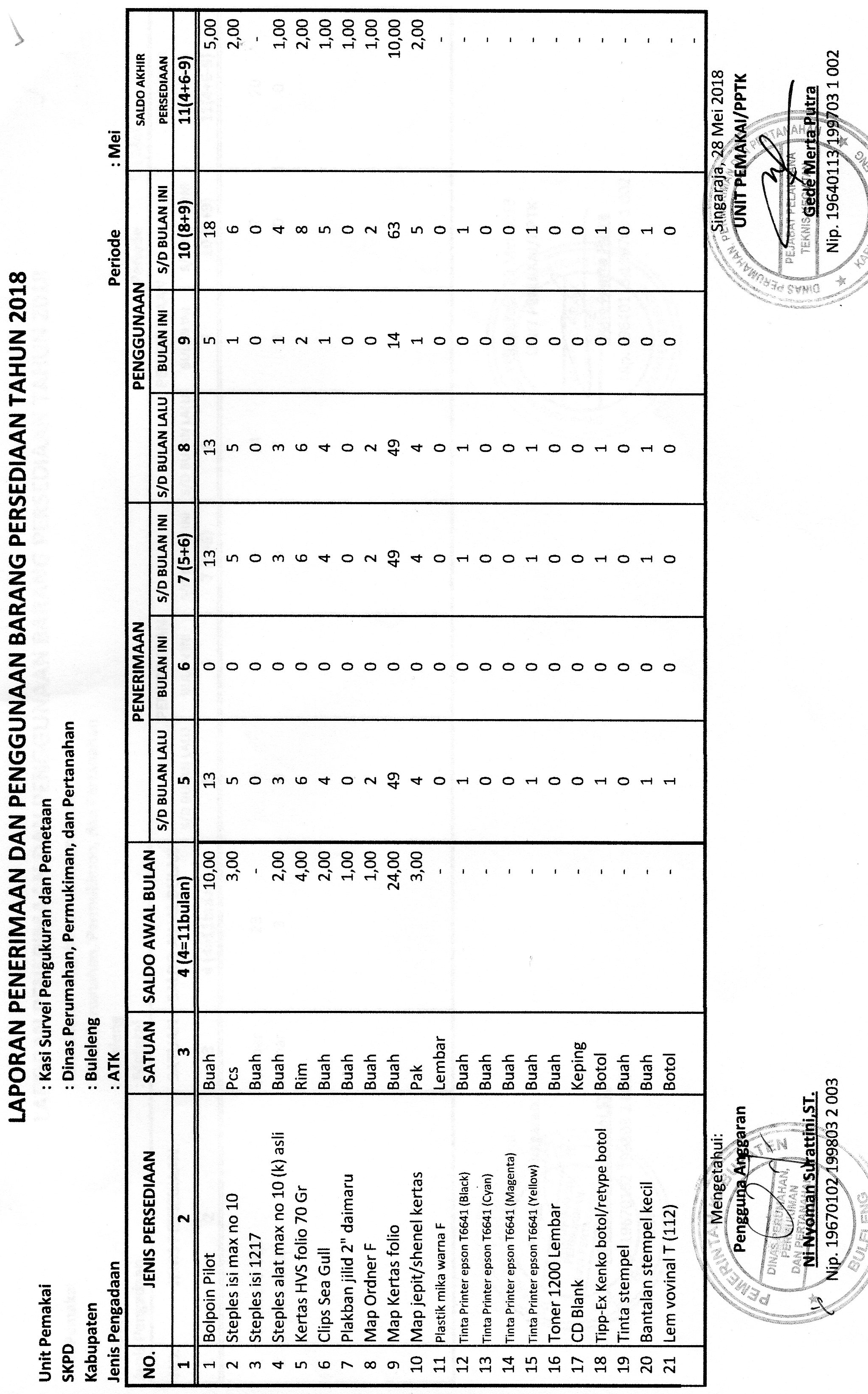 LAPORAN PENERIMAAN DAN PENGGUNAAN BARANG PERSEDIAAN ATK BULAN MEI