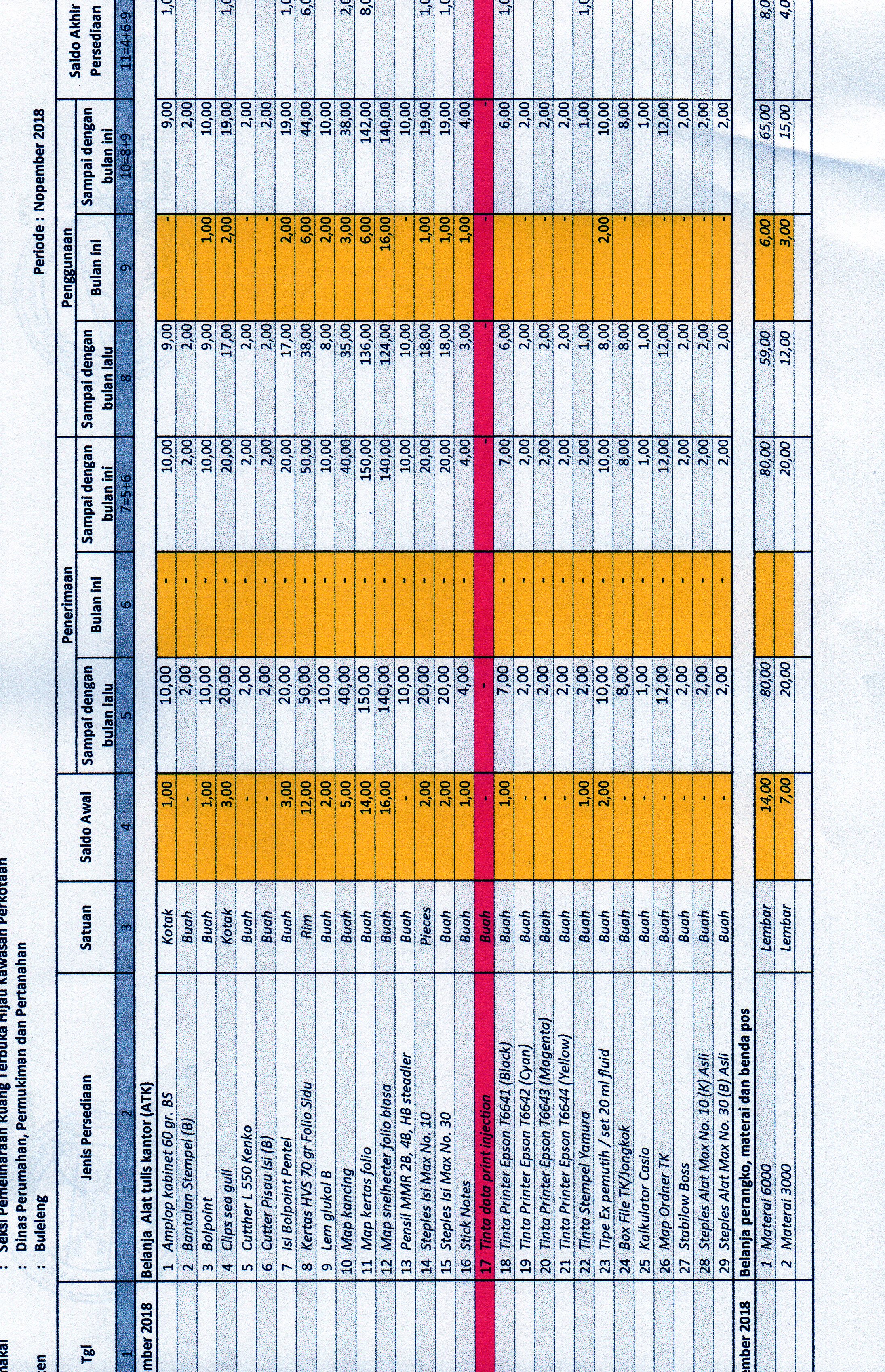 LAPORAN PENERIMAAN DAN PENGGUNAAN BARANG PERSEDIAAN ATK BULAN NOPEMBER BIDANG RTH