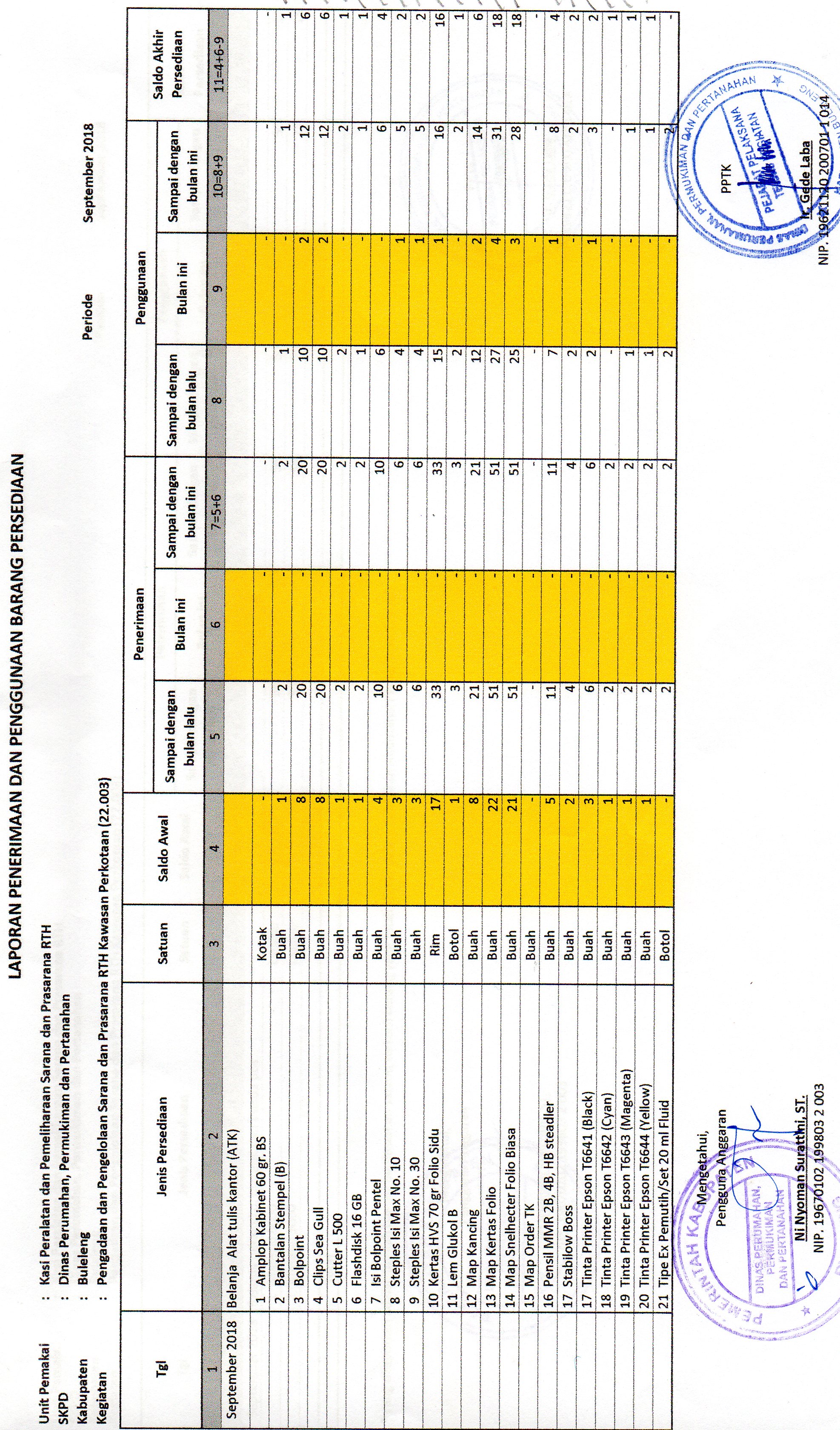 LAPORAN PENERIMAAN DAN PENGGUNAAN BARANG PERSEDIAAN ATK BULAN SEPTEMBER BIDANG RTH (22.003)