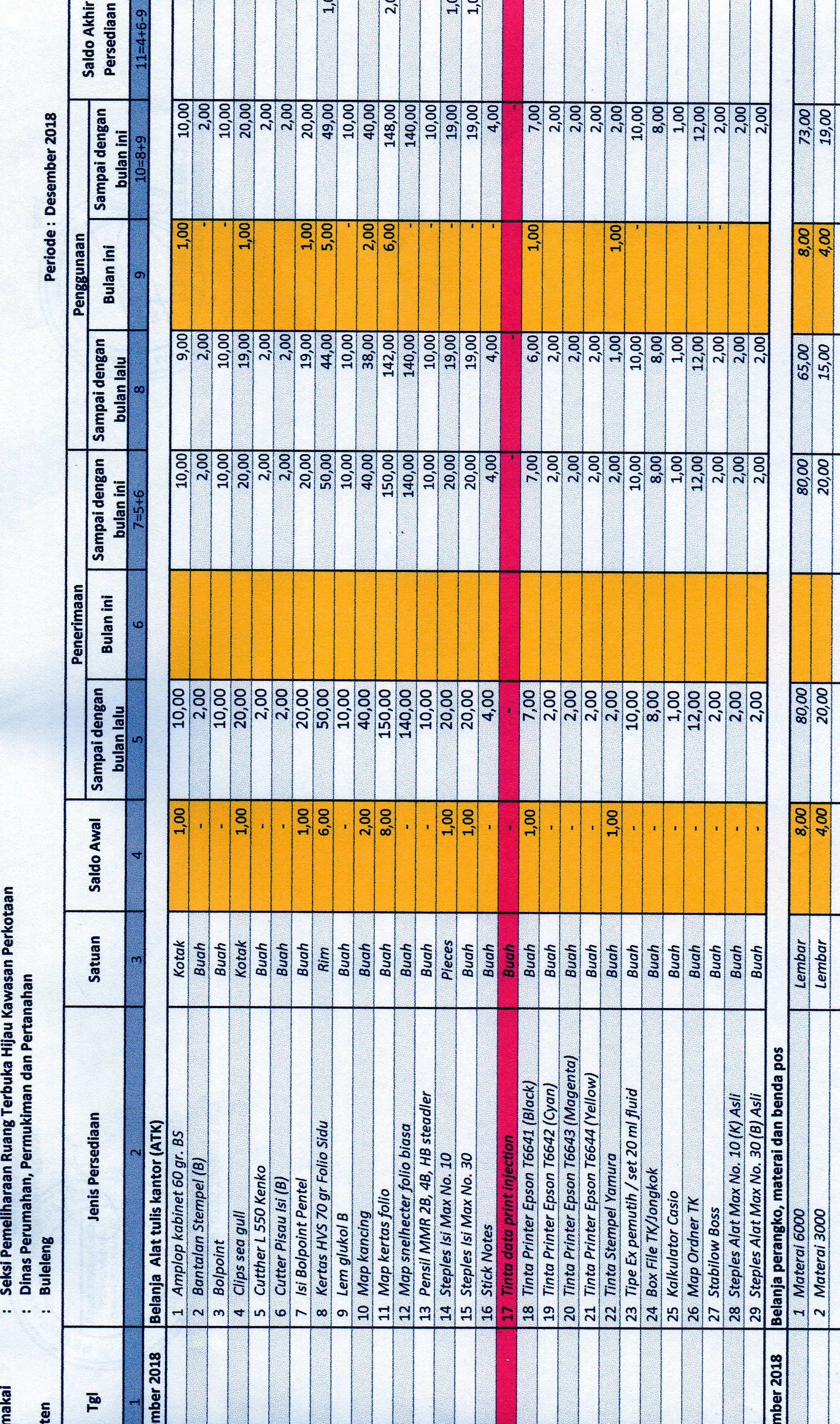 LAPORAN PENERIMAAN DAN PENGGUNAAN BARANG PERSEDIAAN ATK DAN MATERAI BULAN DESEMBER BIDANG RTH