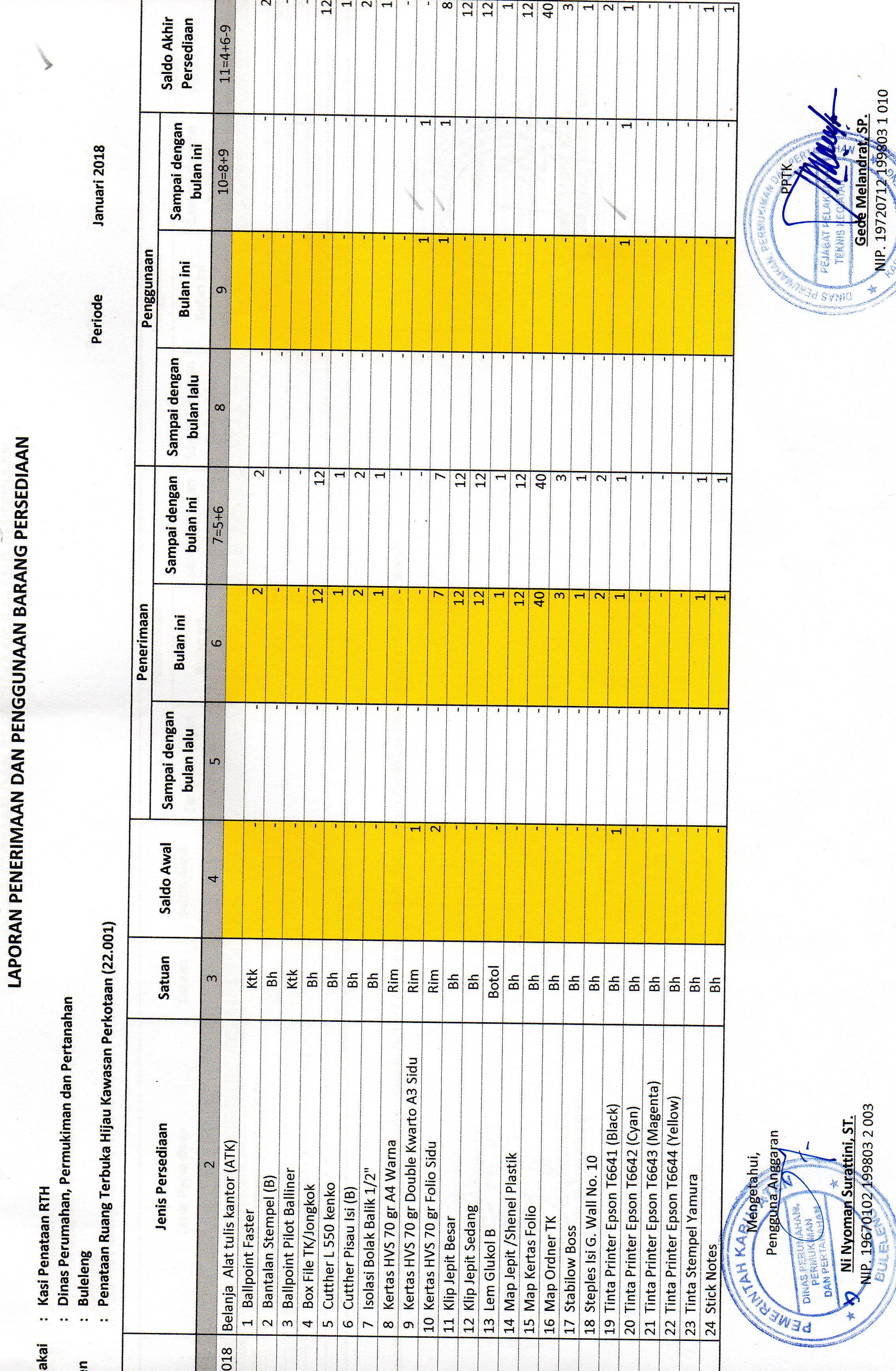 LAPORAN PENERIMAAN DAN PENGGUNAAN BARANG PERSEDIAAN ATK JANUARI BIDANG RTH (22.001)