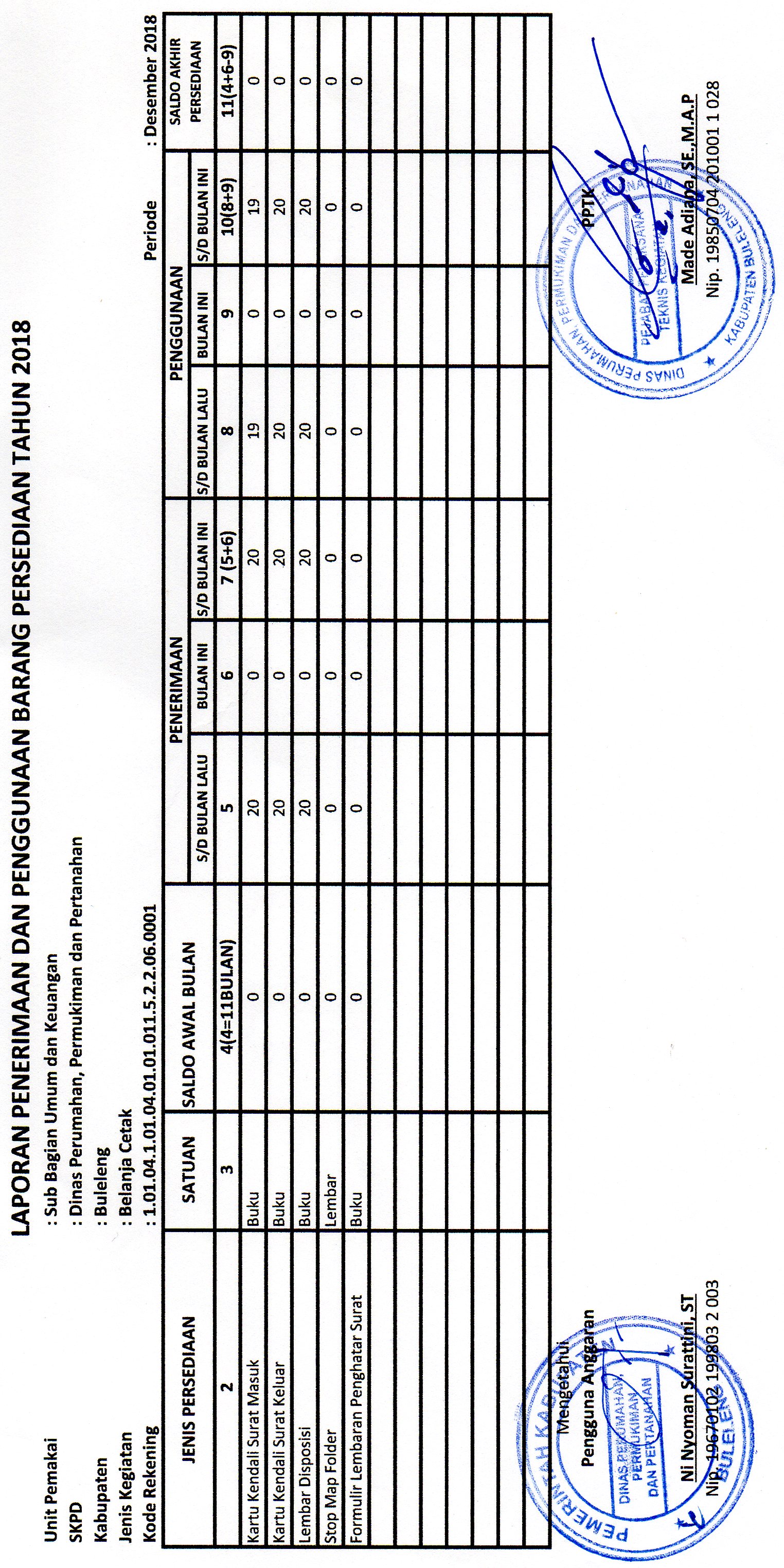 LAPORAN PENERIMAAN DAN PENGGUNAAN BARANG PERSEDIAAN BELANCA CETAK BULAN DESEMBER BIDANG UMUM DAN KEUANGAN (01,022)