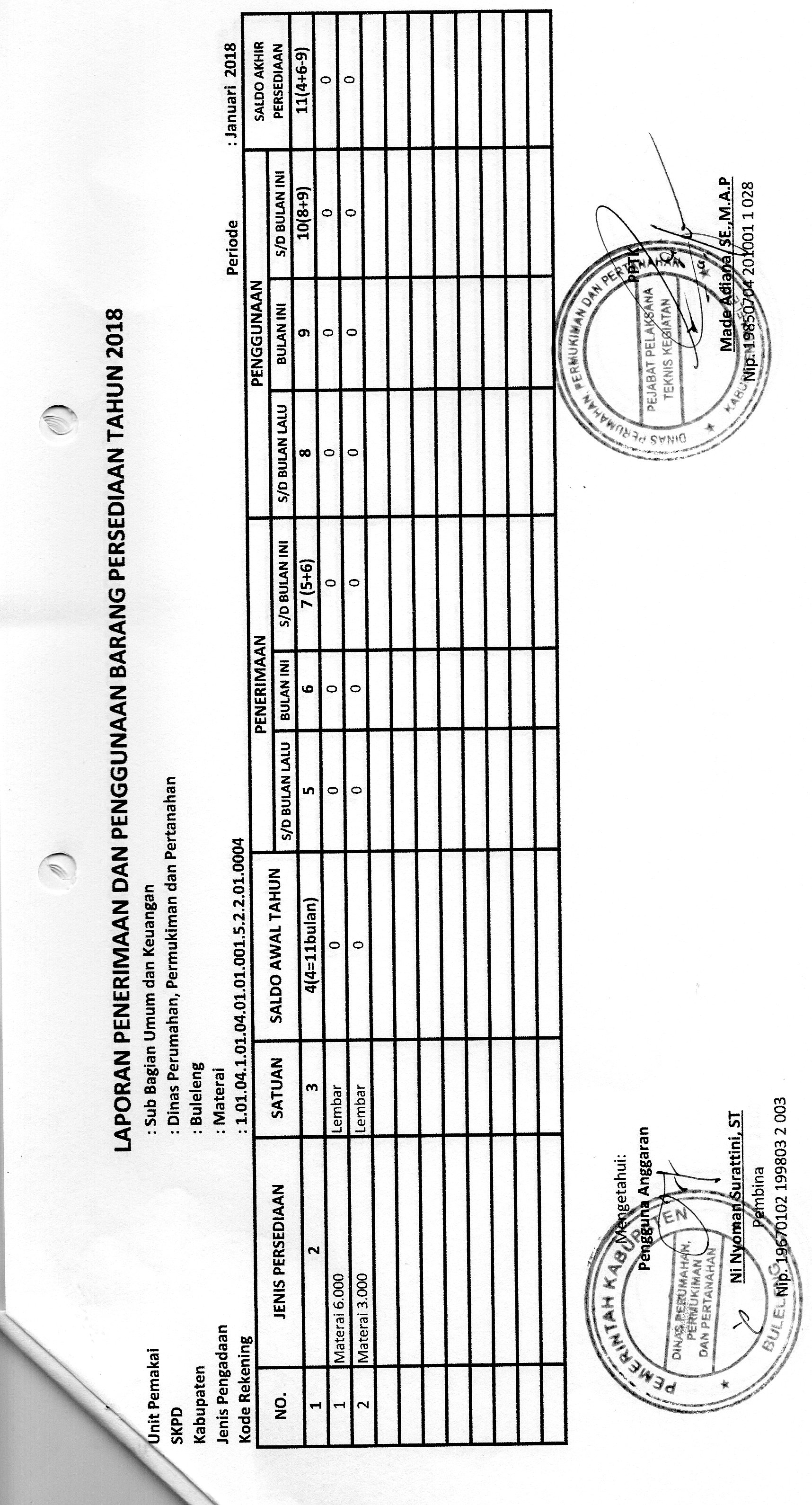 LAPORAN PENERIMAAN DAN PENGGUNAAN BARANG PERSEDIAAN MATERAI BULAN JANUARI BIDANG UMUM DAN KEUANGAN (01.001)
