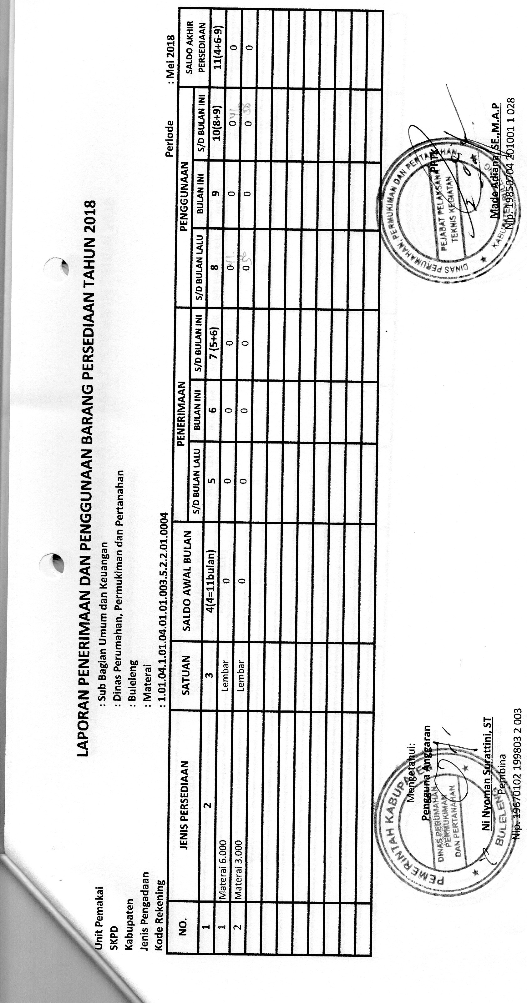 LAPORAN PENERIMAAN DAN PENGGUNAAN BARANG PERSEDIAAN MATERAI BULAN MEI BIDANG UMUM DAN KEUANGAN (01.003)