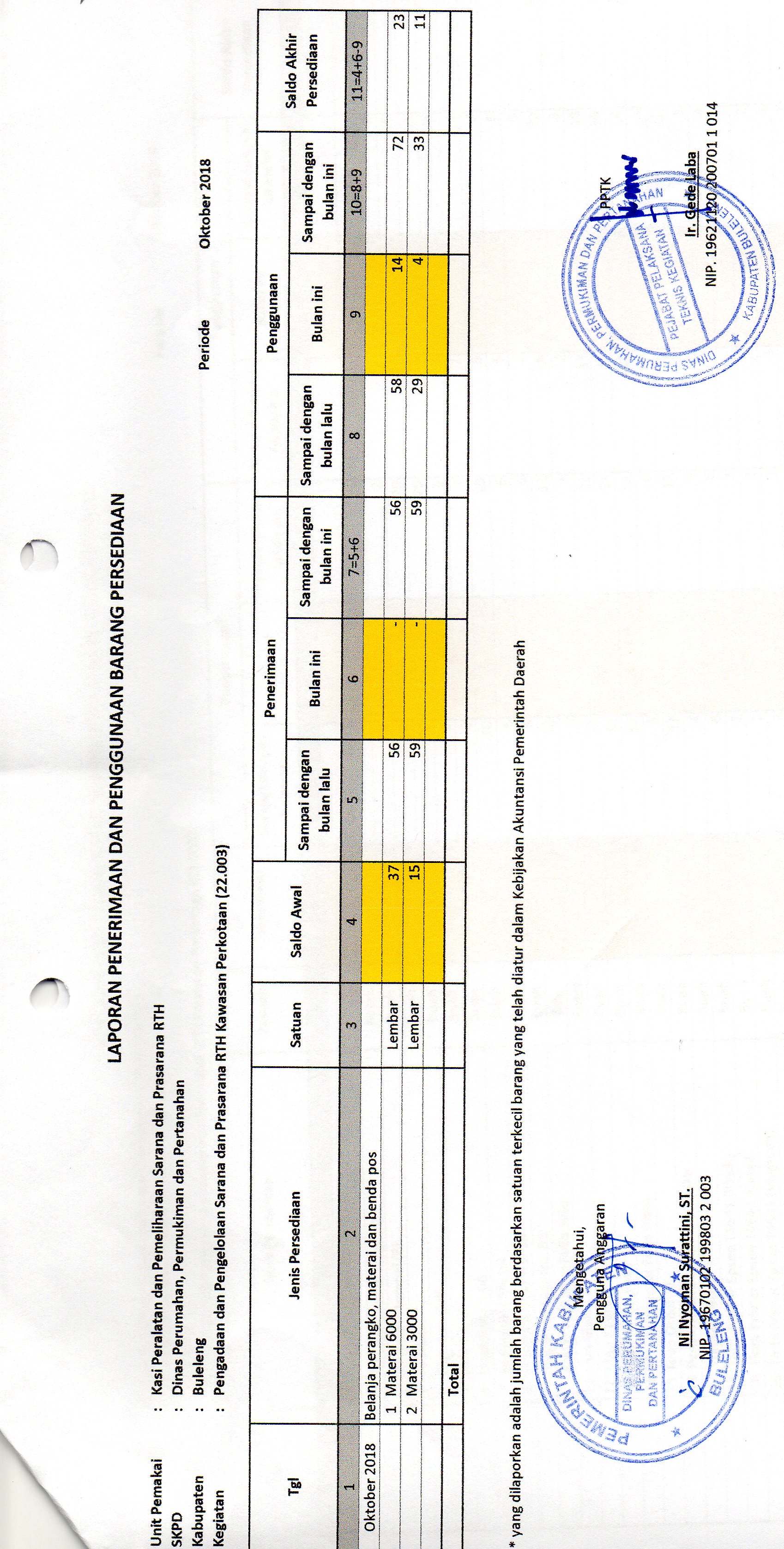 LAPORAN PENERIMAAN DAN PENGGUNAAN BARANG PERSEDIAAN MATERAI BULAN OKTOBER BIDANG RTH