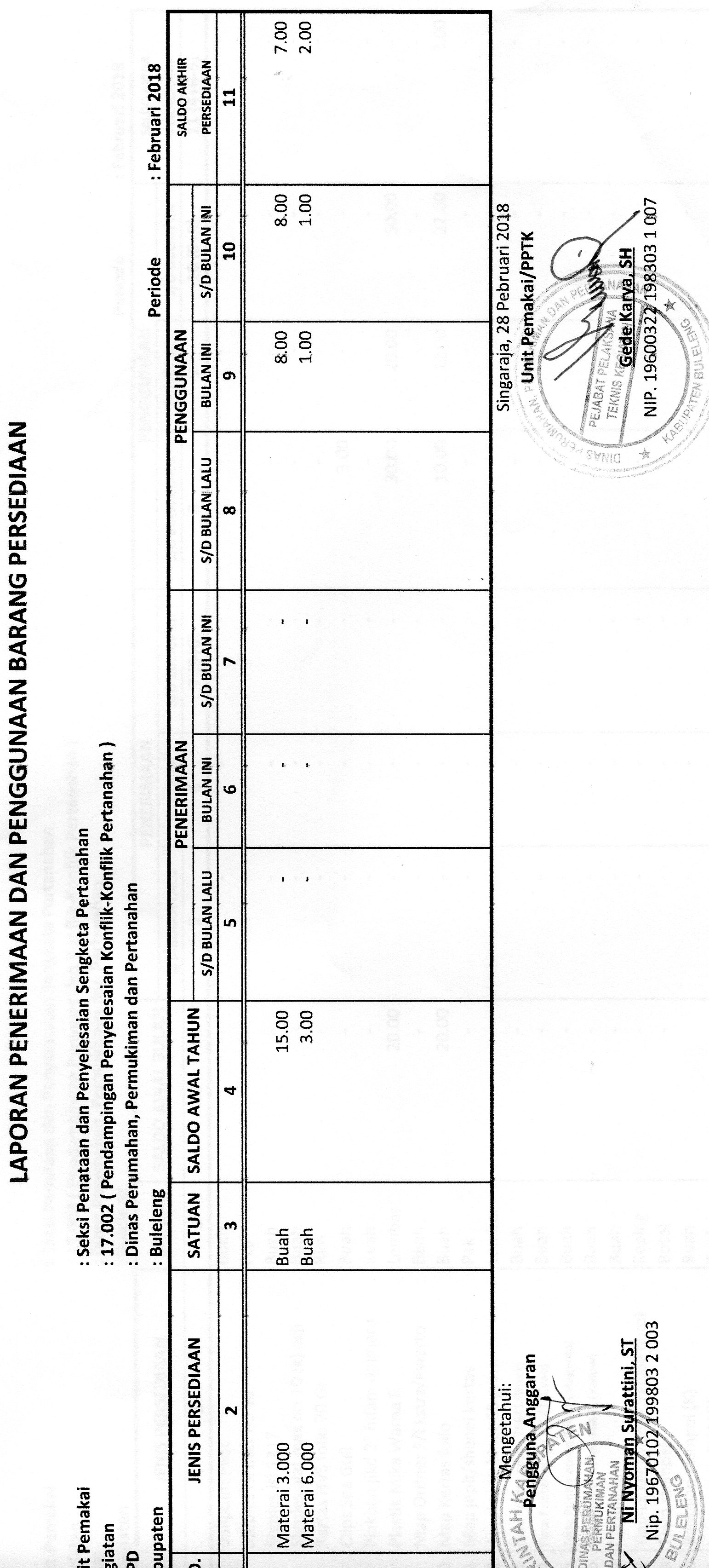 LAPORAN PENERIMAAN DAN PENGGUNAAN BARANG PERSEDIAAN MATERAI BULAN PEBRUARI