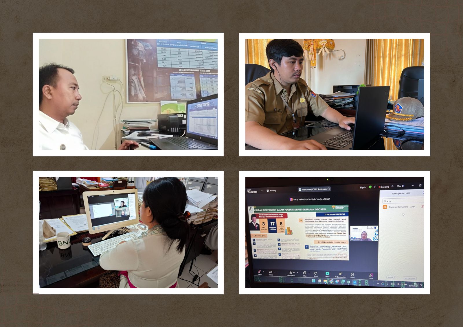 Rabu, 15 Jnauari 2025 beberapa staf Dinas Perkimta telah melaksanakan Bimbingan Teknis Pelaksanaan Pendataan Housing Queue (IGAHP) via Zoom Meeting sejak Senin, 13 Januari 2025 hingga hari ini.