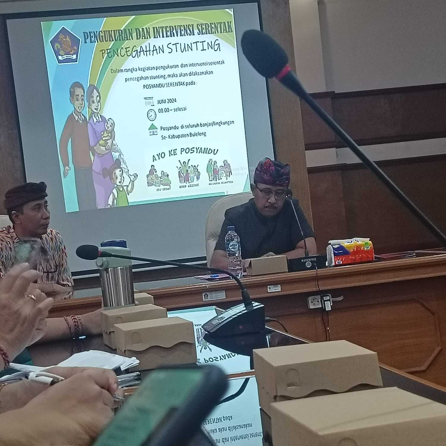 Dalam Rangka meningkatkan cakupan intervensi Stunting dan penurunan kasus Stunting tahun 2024, Kasubag Umum & Keuangan Nyoman Sriyadnya melaksanakan kegiatan rapat Koordinasi Percepatan Penurunan Stunting melalui Intervensi Gizi Spesifik yang di laksanakan di Ruang Pertemuan Unit Iv Setda Kabupaten Buleleng.
