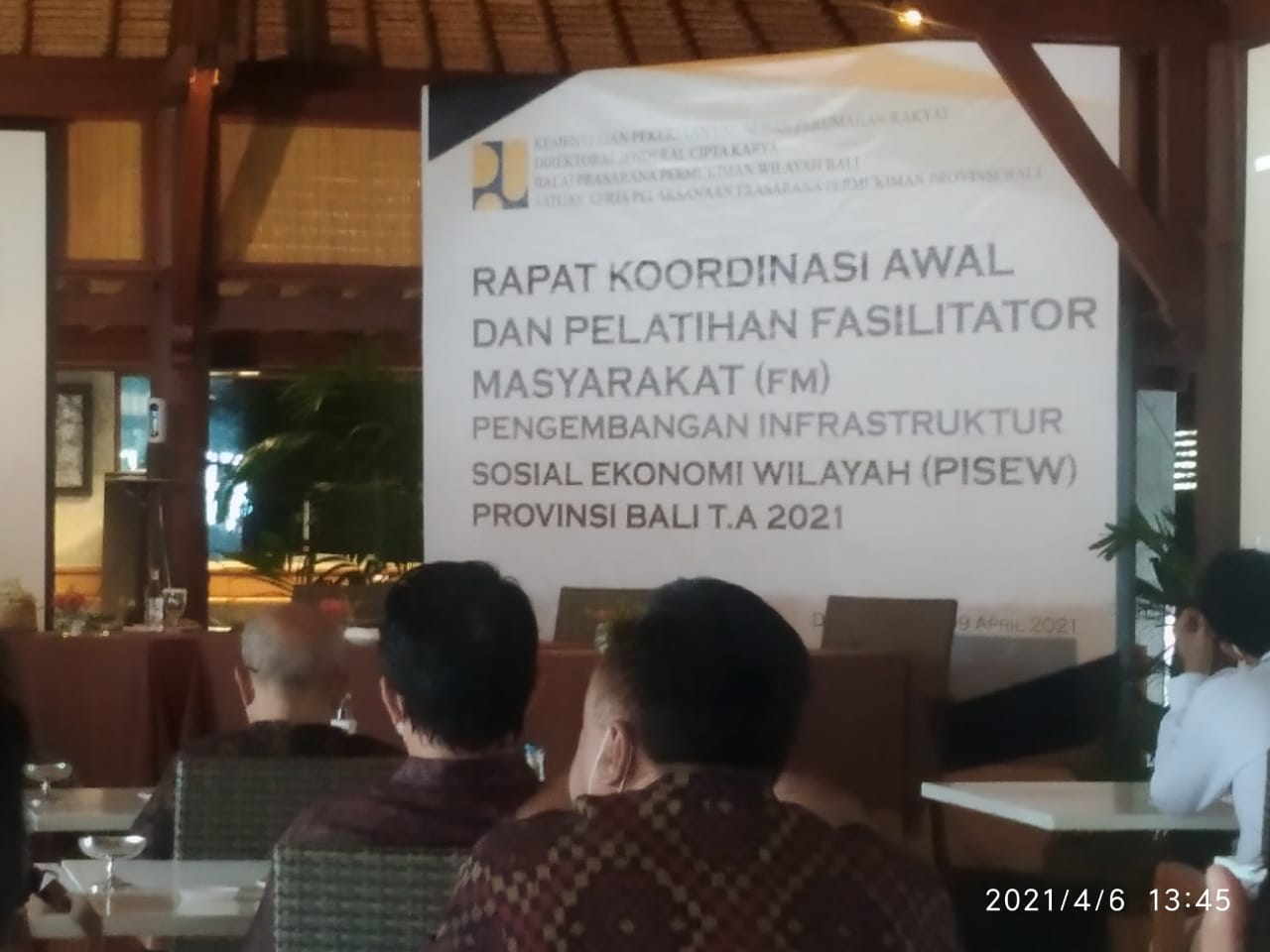Hari Selasa, 6 April 2021 Dinas Perumahan, Kawasan Permukiman dan Pertanahan Kabupaten Buleleng Mengikuti acara Rapat Koordinasi Awal dan Pelatihan Fasilitator Masyarakat (FM) Pengembangan Infrastruktur Sosial Ekonomi Wilayah (PISEW) Provinsi Bali Tahun Anggaran 2021 bertempat di Prama Sanur Beach Hotel, yang diselenggarakan dan dibuka oleh Kepala Balai Prasarana Permukiman Wilayah Bali, yang dihadiri oleh Perwakilan Kabupaten Buleleng dari Kepala Bidang Kawasan Permukiman Disperkimta Kabupaten Buleleng dan 4 (empat) Perwakilan Kabupaten Lainnya sebagai Penerima Program PISEW, yang dilaksanakan dari hari selasa 6 april sampai dengan 7 april 2021.