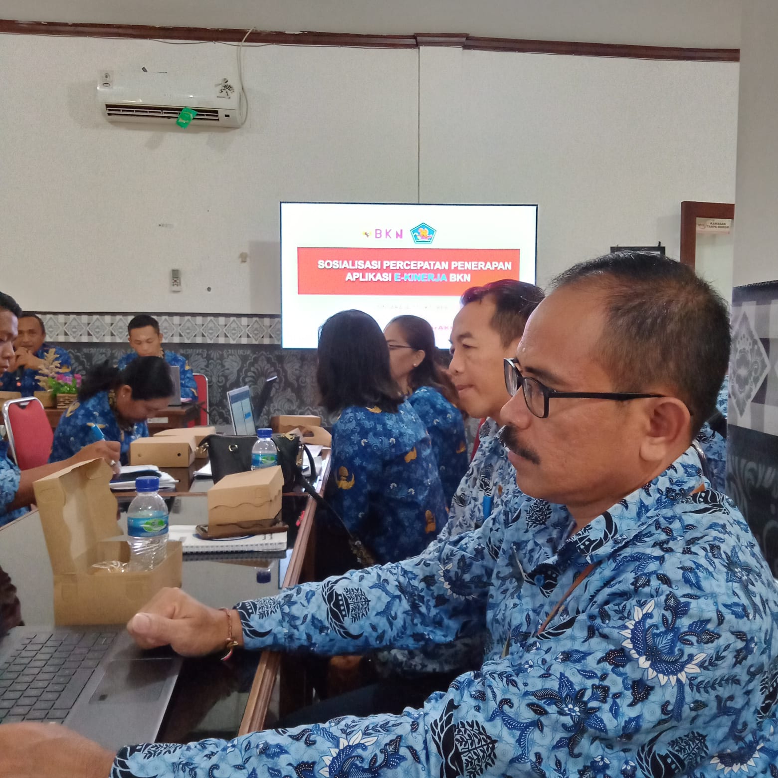 Bertempat di Ruang Rapat BKPSDM, Kasubag Umum dan Keuangan Dinas Perkimta Buleleng Bapak Nyoman Sriyadnya, S.Ak bersama dengan Staf Kepegawaian menghadiri Sosialisasi Percepatan Penerapan Aplikasi E-Kinerja BKN.