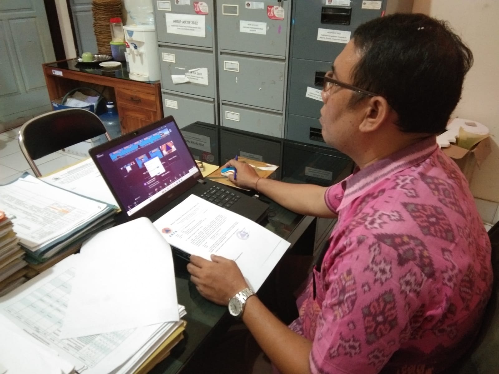 Jafung Penata Kelola Perumahan I Made Sugihantara pada Selasa, 18 Maret 2025, mengikuti Zoom Meeting terkait Rapat Koordinasi Nasional Penanggulangan Bencana Tahun 2025 dengan tema "Meningkatkan Kemampuan Daerah dalam Pengurangan Risiko Bencana", yang diselenggarakan oleh Badan Nasional Penanggulangan Bencana (BNPB) kegiatan ini di selenggarakan selama dua hari 18-19 Maret 2025.