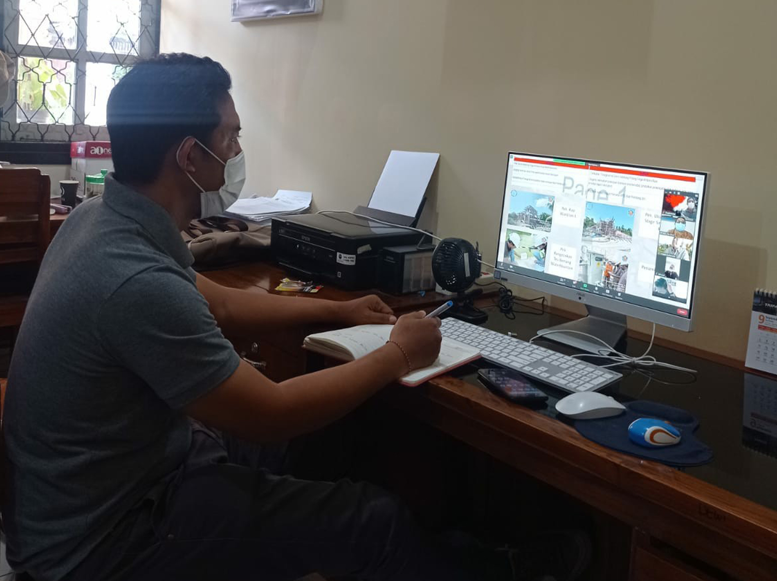 Jumat, 3 September 2021. Sebagai tim teknis pembangunan Taman Bung Karno tahap IV Kepala Bidang Kawasan Permukiman Dinas Perkimta Kabupaten Buleleng, Made Agus Suardana,ST. mengikuti rapat virtual melalui aplikasi zoom meeting yang diadakan Dinas Lingkungan Hidup Kabupaten Buleleng perihal Rapat Mingguan, MC-1 Pelaksanaan Pekerjaan Pembangunan RTH Taman Bung Karno Tahap IV.