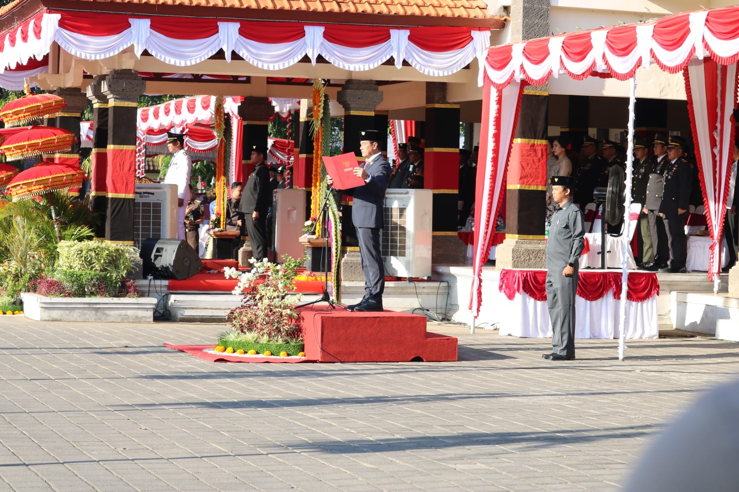 Kadis Perkimta Buleleng, Ni Nyoman Surattini bersama pegawai Disperkimta lainnya hadir dalam pelaksanaan upacara pengibaran bendera Merah Putih HUT ke-79 Kemerdekaan Republik Indonesia yang berlangsung di Lapangan Ngurah Rai/Taman Kota Singaraja. (17/08)
