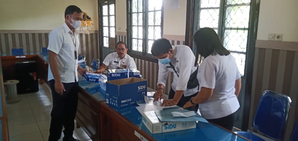 Kasubag Umum dan Keuangan Bapak Nyoman Sriyadnya, S.Ak bersama Tim pengelola Persediaan menerima kunjungan sekaligus pengecekan Fisik Persediaan Auditor Inspektorat hari ini Rabu, 28 Desember 2022.