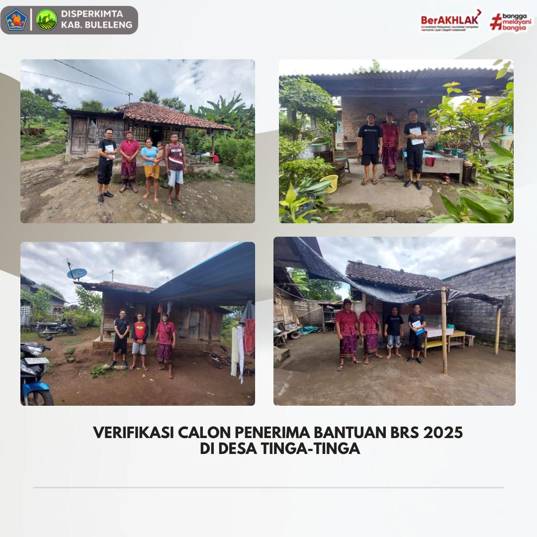 Staf di bidang perumahan Dinas Perkimta melaksanakan verifikasi calon penerima Bantuan Rumah Swadaya (BRS) Tahun Anggaran 2025 di Desa Tinga-Tinga. Kegiatan ini bertujuan untuk memastikan kelayakan calon penerima bantuan berdasarkan kondisi rumah mereka.
