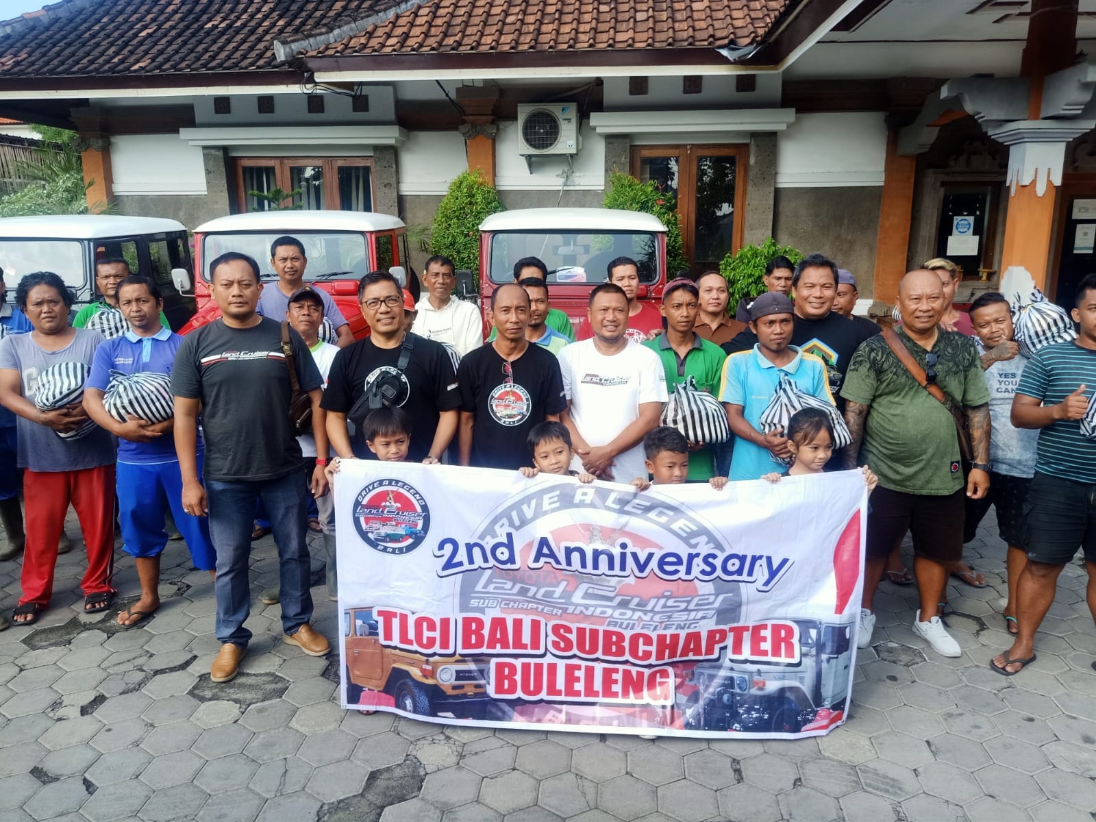 Minggu 25 Februari 2024 Tim Toyota Land Cruiser (TLCI) Bali Chapter Buleleng "berbagi" mengadakan Bakti Sosial berupa pembagian paket Sembako kepada 23 orang THL Drainase dalam rangka merayakan HUT TLCI yang Kedua. Penerima paket sembako termasuk kategori tidak mampu dan dipilih dari 300 orang THL Dinas PUTR Kabupaten Buleleng.