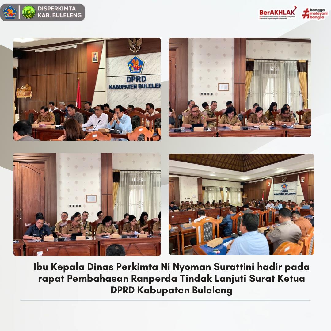 Kepala Dinas Perkimta Kabupaten Buleleng, Ni Nyoman Surattini, bersama Kepala Bidang Perumahan dan staf, turut hadir dalam rapat tersebut, Rapat tersebut bertujuan untuk membahas secara mendalam poin-poin yang terkandung dalam Ranperda, yang diharapkan dapat memberikan kontribusi positif bagi pengelolaan sumber daya daerah dan penanggulangan bencana, serta memperkuat kerjasama daerah yang lebih efisien dan terkoordinasi.
