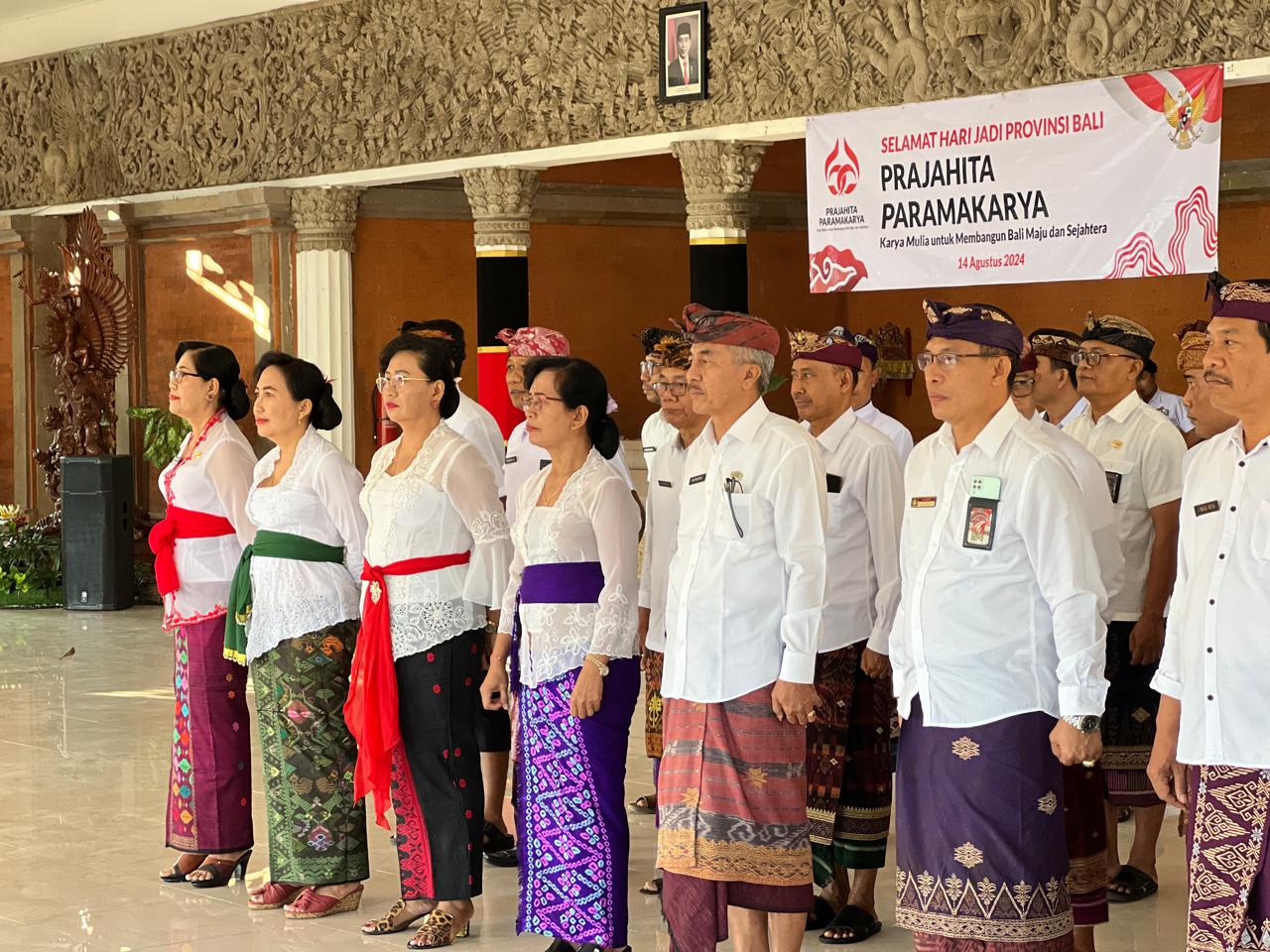 Penjabat Bupati Buleleng membacakan Sambutan Penjabat Gubernur Bali. Dalam sambutannya, disampaikan bahwa Peringatan Hari Jadi ke-66 Provinsi Bali pada hari ini, diharapkan dapat menjadi wahana menumbuh kembangkan rasa persatuan dan kesatuan, mendorong semangat membangun daerah, serta memperkuat rasa kecintaan masyarakat terhadap Provinsi Bali. Peringatan ini juga menjadi sarana untuk menunjukkan jati diri masyarakat dan Provinsi Bali yang memiliki keunggulan kualitatif, komparatif, dan kompetitif guna memacu pembangunan di Bali.