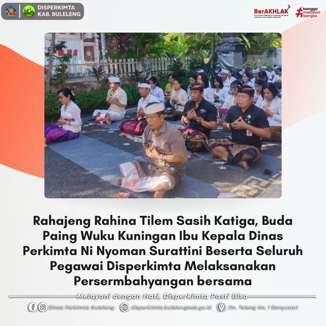 Bertepatan dengan Hari Tilem Sasih Katiga, Buda Paing Wuku Kuningan (2/10), Ibu Kepala Dinas Perkimta Ni Nyoman Surattini bersama seluruh pegawai Dinas Perkimta Kab. Buleleng khususnya yang beragama Hindu melaksanakan kegiatan persembahyangan bersama di Padmasana Kantor Disperkimta.