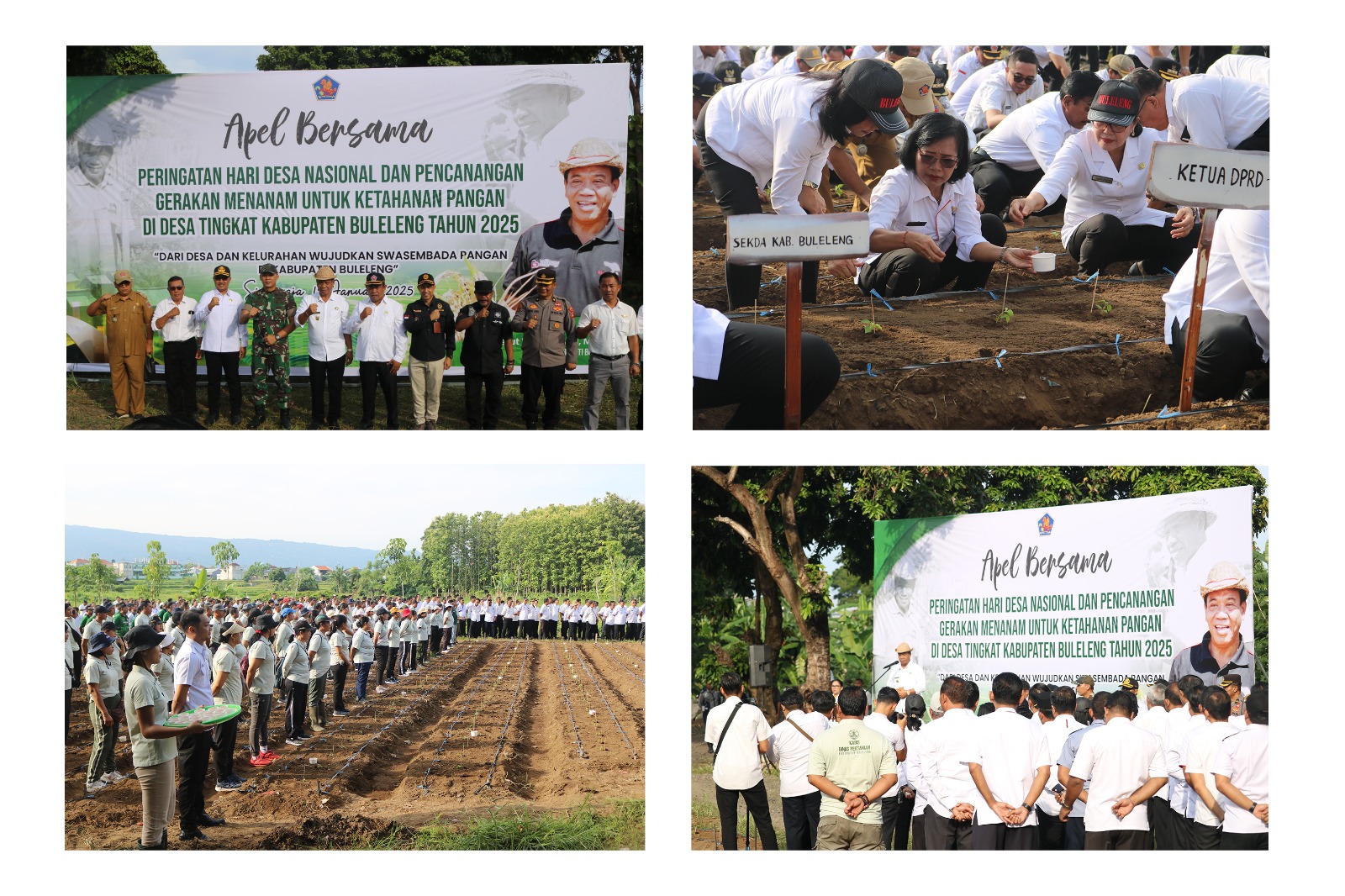 Selanjutnya setelah apel selesai, Ibu Surattini juga turut serta menanam bibit cabai dan jagung yang diinisiasi oleh Penjabat Bupati Buleleng Ketut Lihadnyana diikut juga oleh Kepala Dinas serta Forkompimda Buleleng.