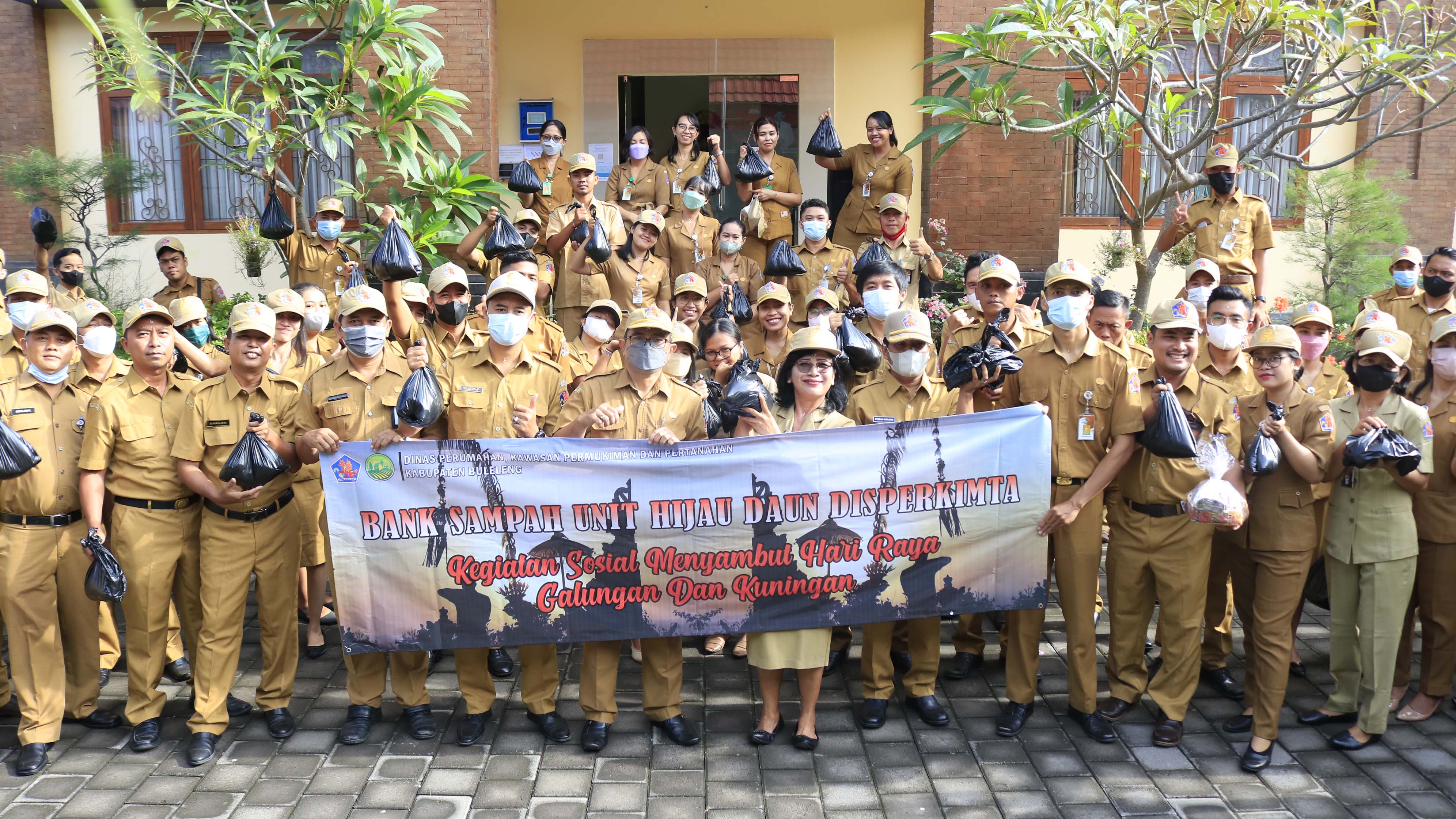 Mengingat Hari Raya Galungan akan dirayakan pada tanggal 8 Juni 2022. Bank Sampah Hijau Daun Disperkimta membagikan Daging Babi, hasil dari pengumpulan Sampah plastik seluruh Pegawai Disperkimta di Bank Sampah Hijau Daun.