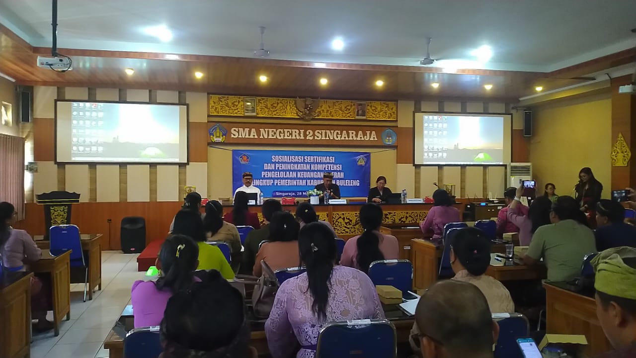 Dengan perihal Sosialisasi Rencana Sertifikasi dan Peningkatan Kompetensi Pengelolaan Keuangan Daerah, Staf Keuangan Disperkimta Januarsana turut hadir dalam acara tersebut yang bertempat di Aula SMA Negeri 2 Singaraja.