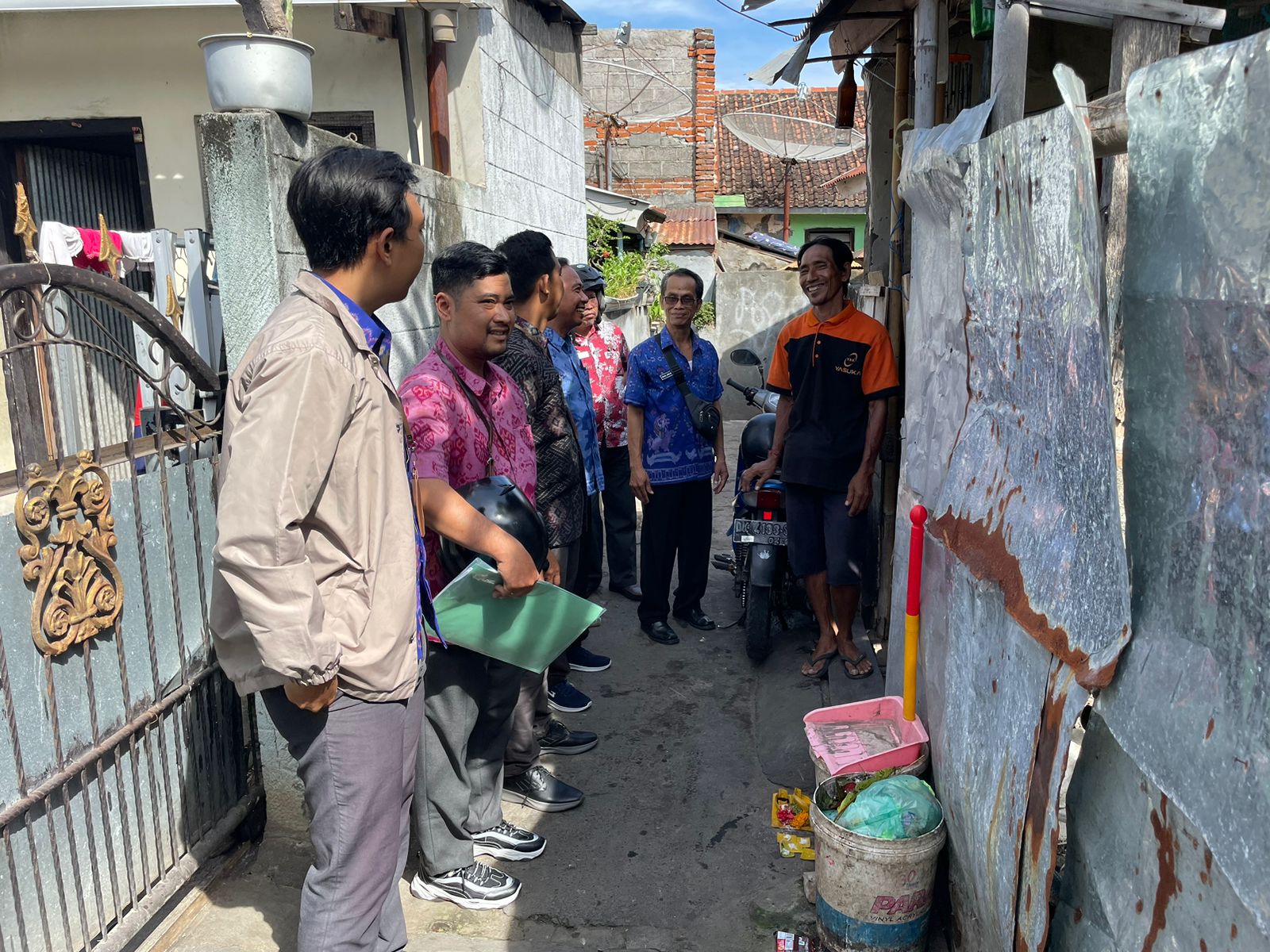 Kabid Kawasan Permukiman Bapak Made Agus Suardana, ST, dan Jafung Penata Kelola Bangunan Gedung Kawasan Permukiman Ahli Muda Bapak Ngurah Arya Kusuma, ST.,M.A.P., Staf Teknis Bidang Kawasan Permukiman dan Penerima Bantuan telah selesai melaksanakan kegiatan Pre Construction Meeting (PCM) Perbaikan Rumah Tidak Layak Huni pada Kawasan Kumuh di Kelurahan Kampung Anyar dan dilanjutkan dengan kunjungan ke lokasi masing masing Penerima Bantuan guna memberikan masukan teknis dalam pelaksanaan perbaikan rumah. (2/7)
