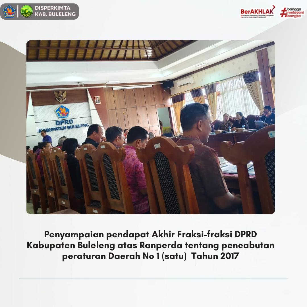 Menindaklanjuti surat dari Ketua DPRD Kabupaten Buleleng terkait rapat penyampaian pandangan dan pendapat akhir fraksi-fraksi mengenai Rancangan Peraturan Daerah (Ranperda) tentang Pencabutan Peraturan Daerah Nomor 1 Tahun 2017 tentang Kerjasama Daerah, Kepala Bidang Perumahan Dinas Perumahan dan Kawasan Permukiman (Perkim) Kabupaten Buleleng, I Gusti Arya Surya Basudewa, hadir di ruang gabungan komisi DPRD Kabupaten Buleleng.