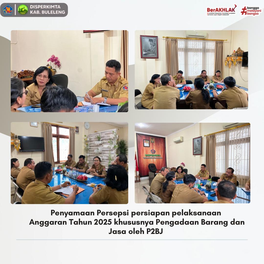 Kepala Dinas Perkimta Kabupaten Buleleng, Ni Nyoman Surattini, mengajak seluruh jajaran Dinas Perkimta dan Tim Pengelola Barang dan Jasa (PPBJ) untuk melaksanakan rapat penyamaan persepsi dalam rangka persiapan pelaksanaan anggaran tahun 2025, khususnya terkait dengan pengadaan barang dan jasa. Rapat tersebut berlangsung di Ruang Kepala Dinas Perkimta, pada Senin, 20 Januari 2025.