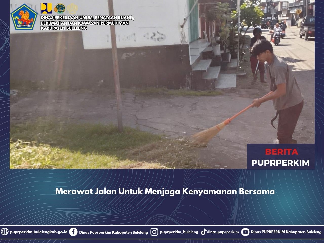 Kegiatan perabasan/pembersihan badan jalan ini dilaksanakan di ruas jalan SP5 Jn. Kalibukbuk – Baktiseraga oleh tenaga juru karya jalan Dinas Pekerjaan Umum, Penataan Ruang, Perumahan dan Kawasan Permukiman sebagai bagian dari pemeliharaan rutin infrastruktur jalan.