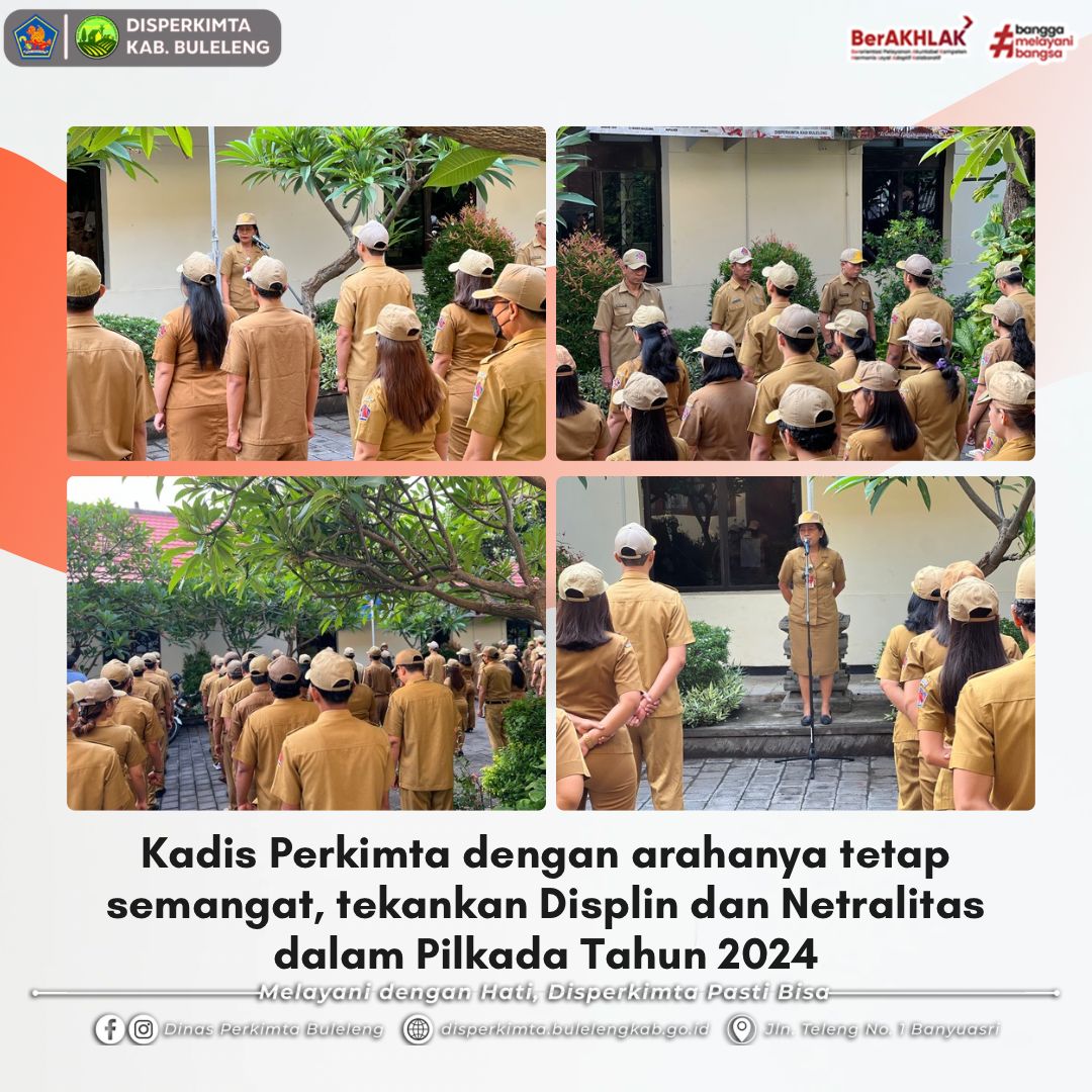 Singaraja 25 November 2024, Dinas Perumahan, Kawasan Permukiman, dan Pertanahan (Disperkimta) melaksanakan apel rutin yang dipimpin langsung oleh Kepala Dinas, Ibu Ni Nyoman Surattini. Apel yang diikuti oleh seluruh pegawai Disperkimta ini berlangsung di halaman kantor Dinas
